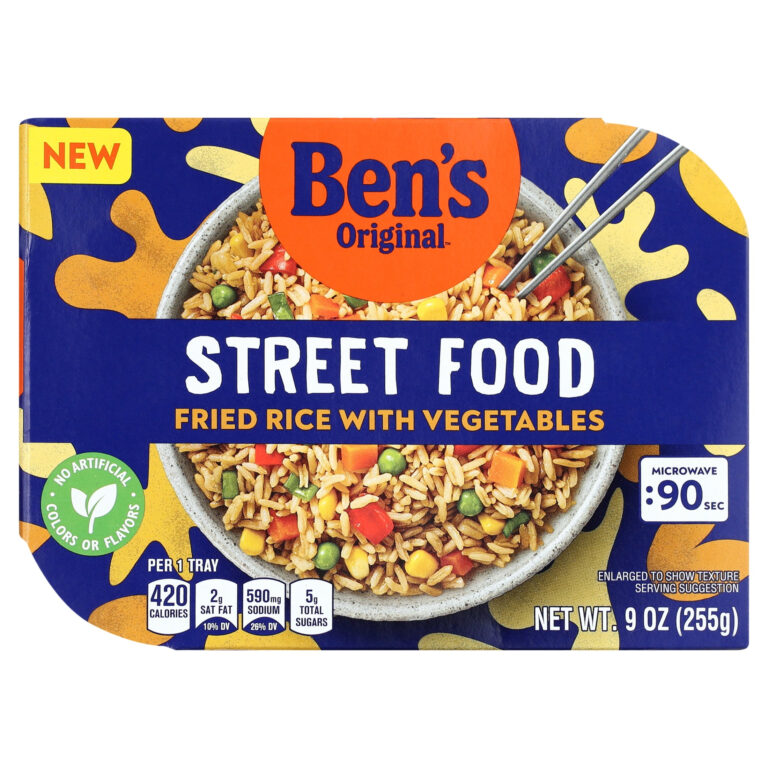 Ben’s Original™ Street Food Fried Rice with Vegetables. 9 Ounces Per Tray. Fully Cooked. Heat and Eat In Just 90 Seconds!