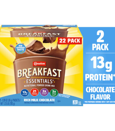 (2 pack) Carnation Breakfast Essentials Powder Protein Nutritional Shake Drink Mix Packets, Rich Milk Chocolate Breakfast Shake, 22 Count