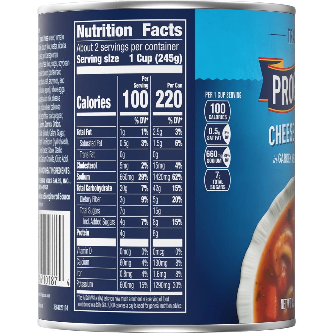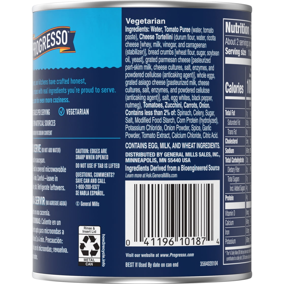 Indulge in the taste of Progresso Traditional Cheese Tortellini in Garden Vegetable Tomato Soup. This delicious, decadent canned soup contains mouthwatering cheese tortellini in a tomato based vegetable soup made with chunky, tender vegetables like zucchini, carrots and celery. This soup has 1/2 cup vegetables per serving. Serve it with a sandwich or a side salad as part of a quick and easy weekday meal. Heat up this microwavable soup in minutes. This comforting, cozy tortellini tomato soup is made with no artificial flavors or colors from artificial sources. Just the taste you expect from Progresso. At Progresso, we’re passionate about making great products. We’ve been creating premium soups for more than 100 years. And today, Progresso still uses quality ingredients for a tasteful flavor found only in our line of canned soup products.