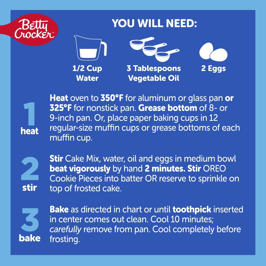 BETTY CROCKER & OREO: Betty Crocker Chocolate Cake Mix with real OREO Cookie Pieces you can sprinkle into the batter before baking or sprinkle on top of the frosted cake QUICK AND EASY: