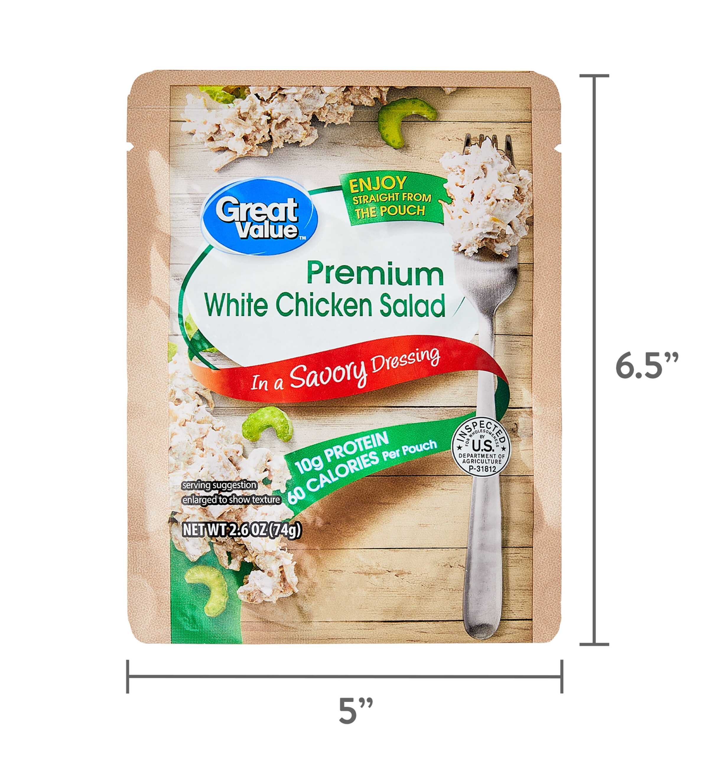 (3 pack) Great Value Premium White Chicken Salad Pouch, Ready-to-Eat, 2.6 oz, Shelf-Stable