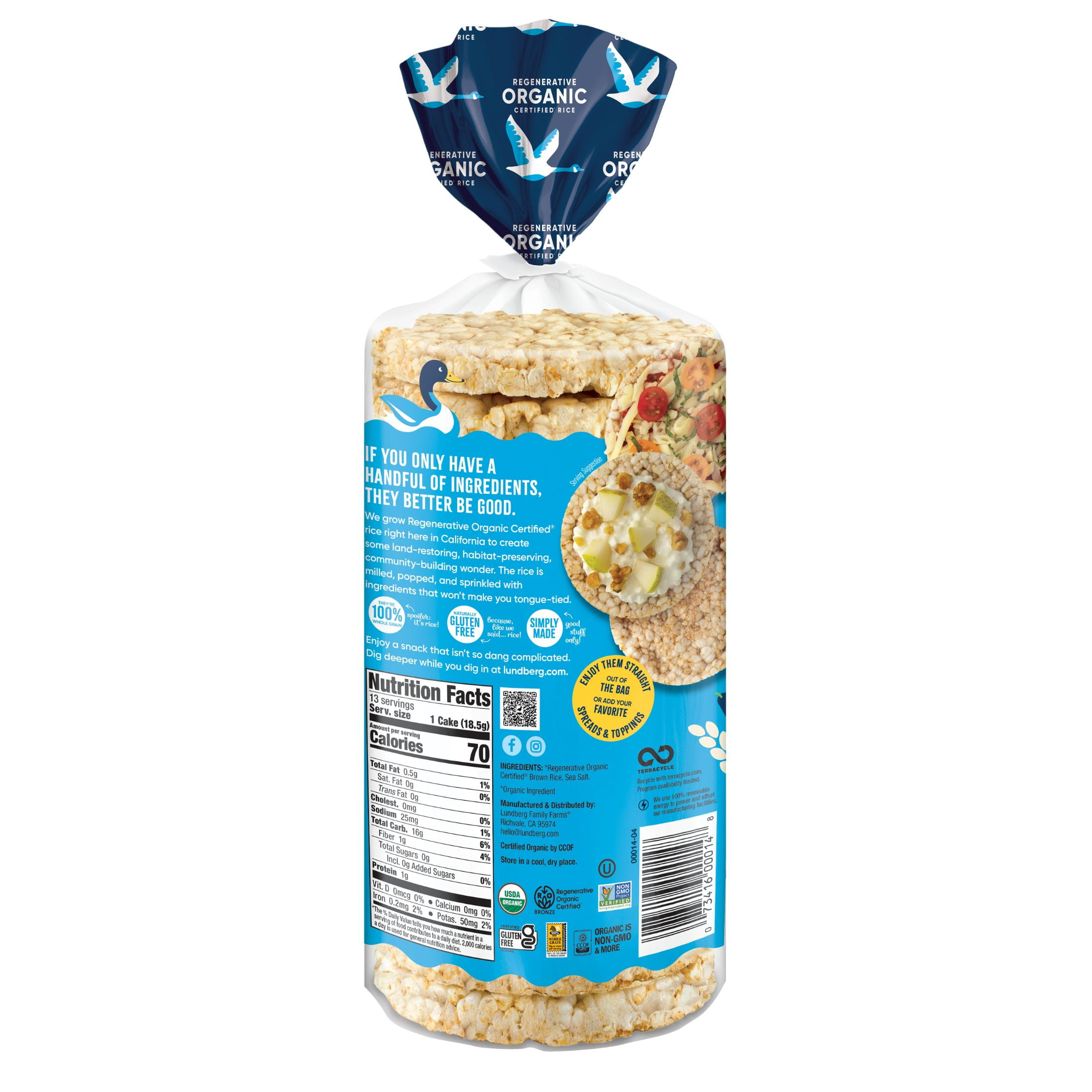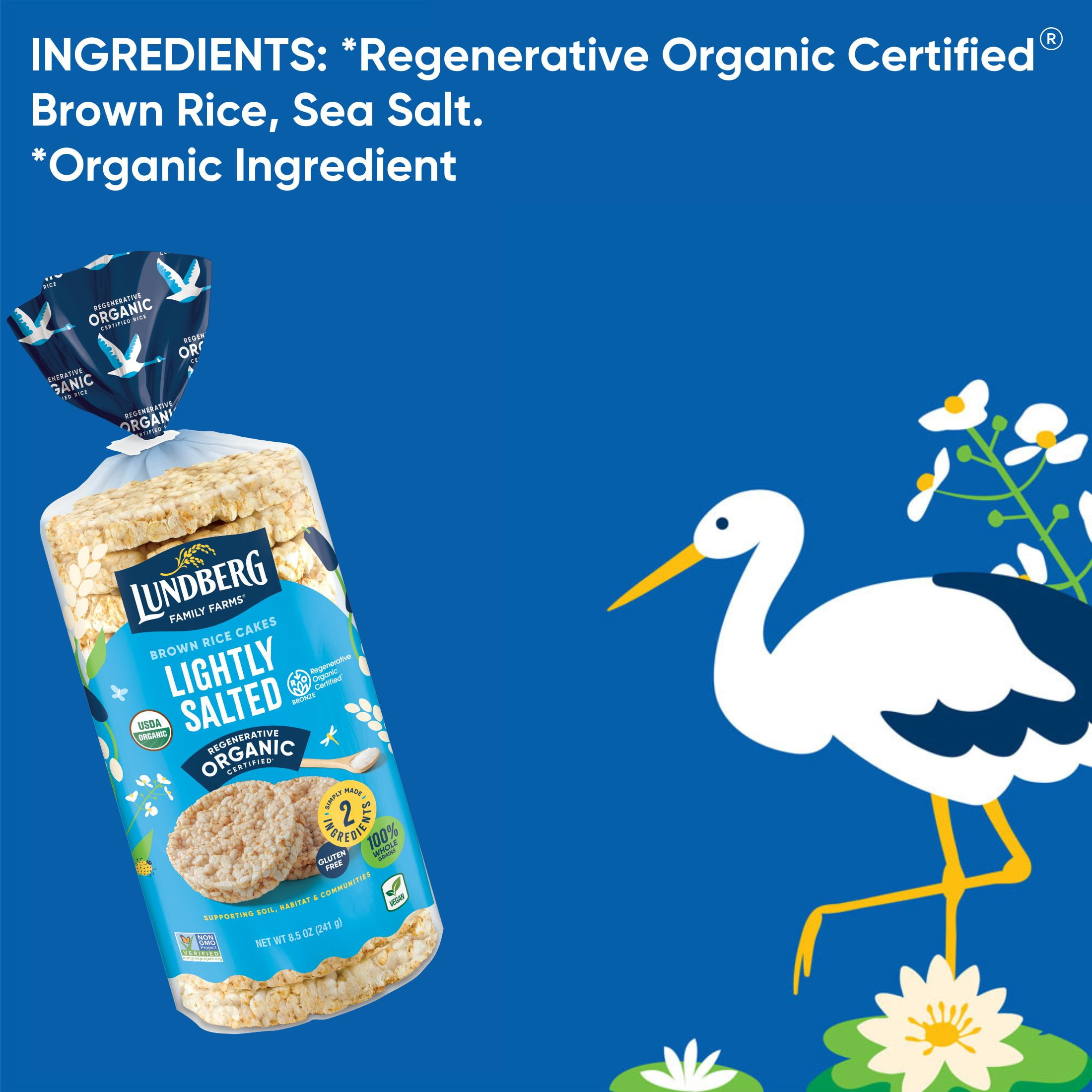 Lundberg Family Farms Organic Rice Cakes are delicious, nutritious, 100% whole grain, and now Regenerative Organic Certified®! Made from our own freshly milled Regenerative Organic Certified® brown rice grown in California to ensure freshness, great taste, and whole grain goodness. Lundberg Family Farms Organic Rice Cakes are Vegan, Certified Gluten Free, Non-GMO Project Verified and contain 18g of whole grains per cake. Truly exceptional taste and a healthy snack for the whole family!