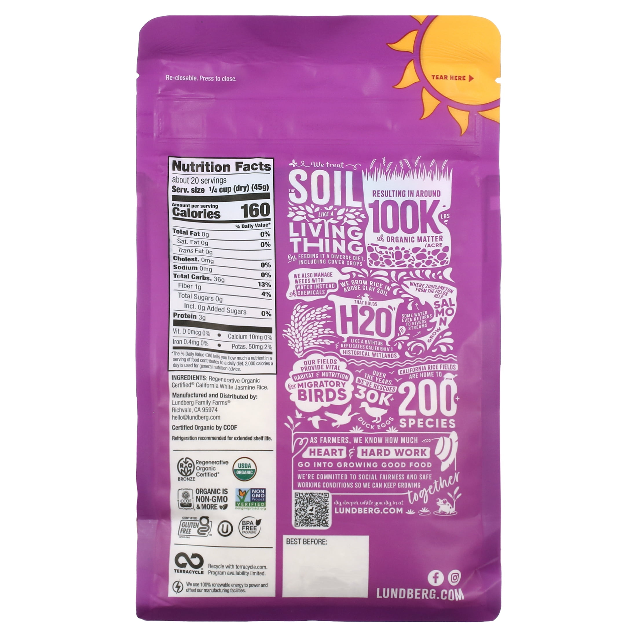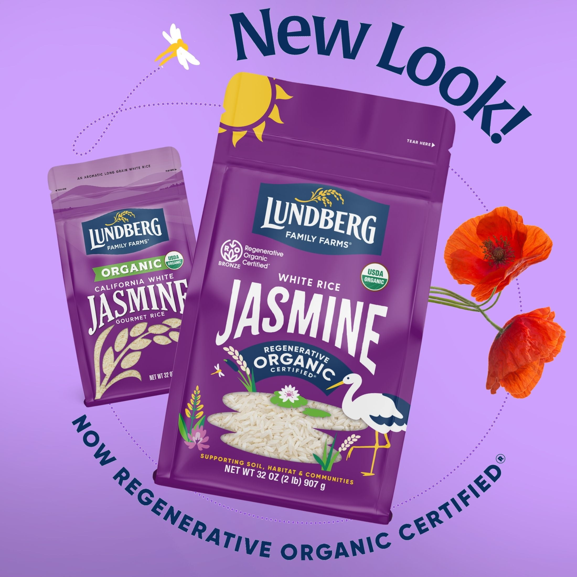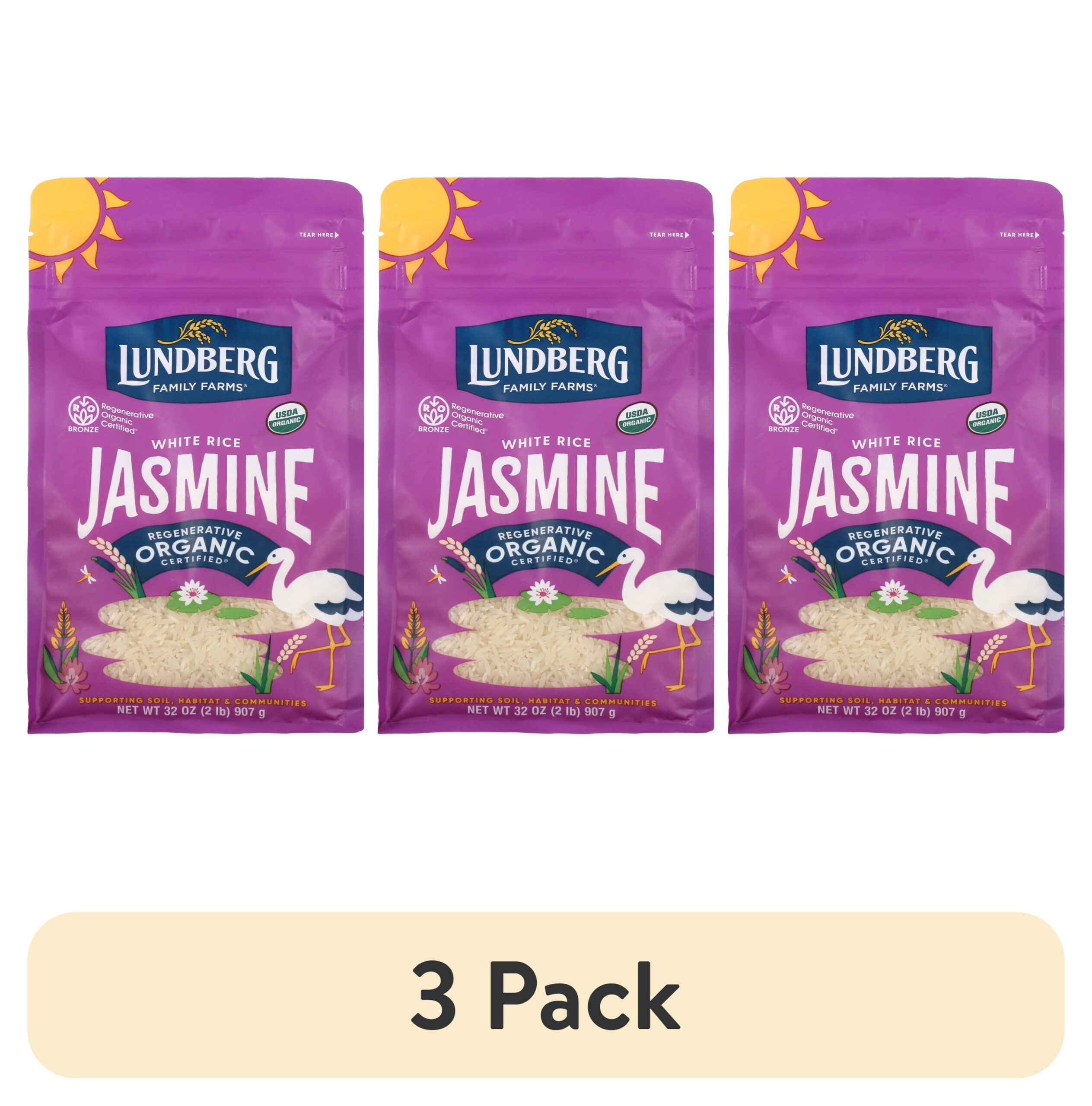 (3 pack) Lundberg Organic Jasmine Rice – Regenerative Organic Certified, 2lb Resealable Bag