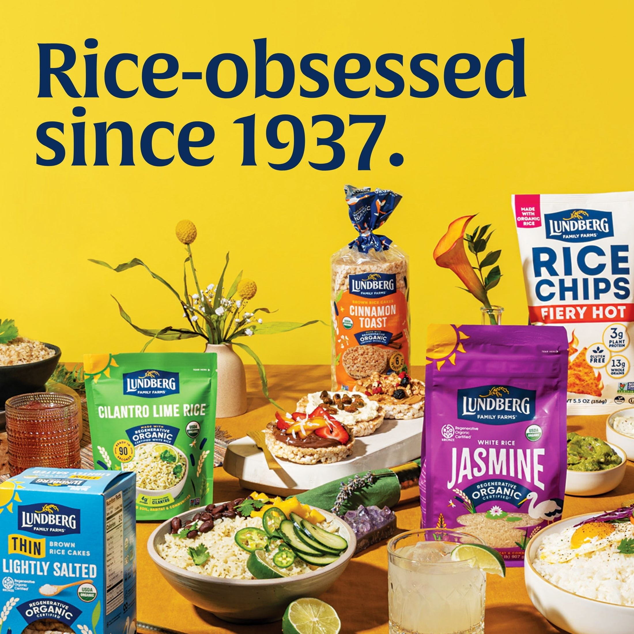 Lundberg Family Farms Organic White Jasmine Rice is Regenerative Organic Certified and USDA Certified Organic. The buttery flavor and light, floral fragrance make it a perfect pantry staple for Thai curry, rice pilaf, and dessert recipes. These long grains cling together when cooked but aren’t sticky, making it the right choice for recipes that call for distinct kernels and a fluffy texture. Vegan, Certified Gluten Free, and Non-GMO Project Verified. Family-owned and founded in 1937, Lundberg’s organic farming practices are a force of land-restoring, habitat-preserving, community-building wonder. And if we care this much about how our rice is grown, just imagine how much we care about how it tastes.