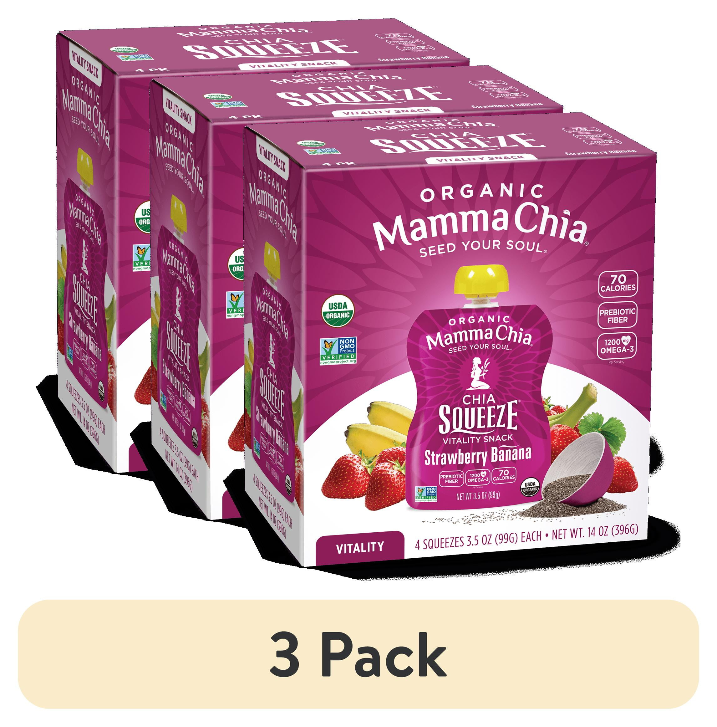 (3 pack) Mamma Chia Strawberry Banana Organic Chia Squeeze Pouch, 3.5 oz, 4 Pouches