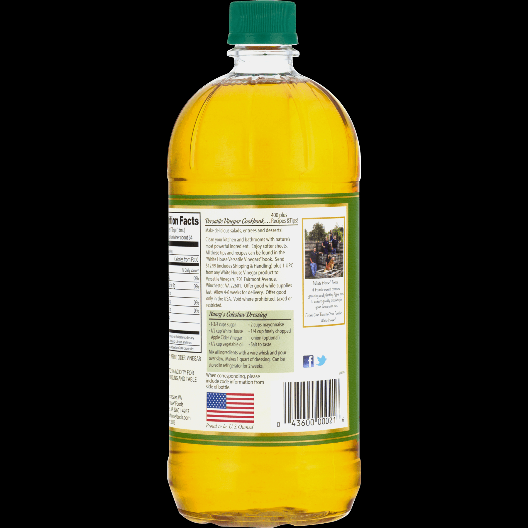 White House Apple Cider Vinegar, 32 oz Crafted from fresh, sun-ripened apples and perfected since 1908, White House Apple Cider Vinegar (32 oz) delivers time-tested purity and classic tangy flavor. Whether you’re cooking, cleaning, or crafting your daily wellness ritual, our 5% acidity vinegar is your versatile, all-natural companion. With Non-GMO, No additives or preservatives. This makes for recipes, detox drinks, or home remedies.