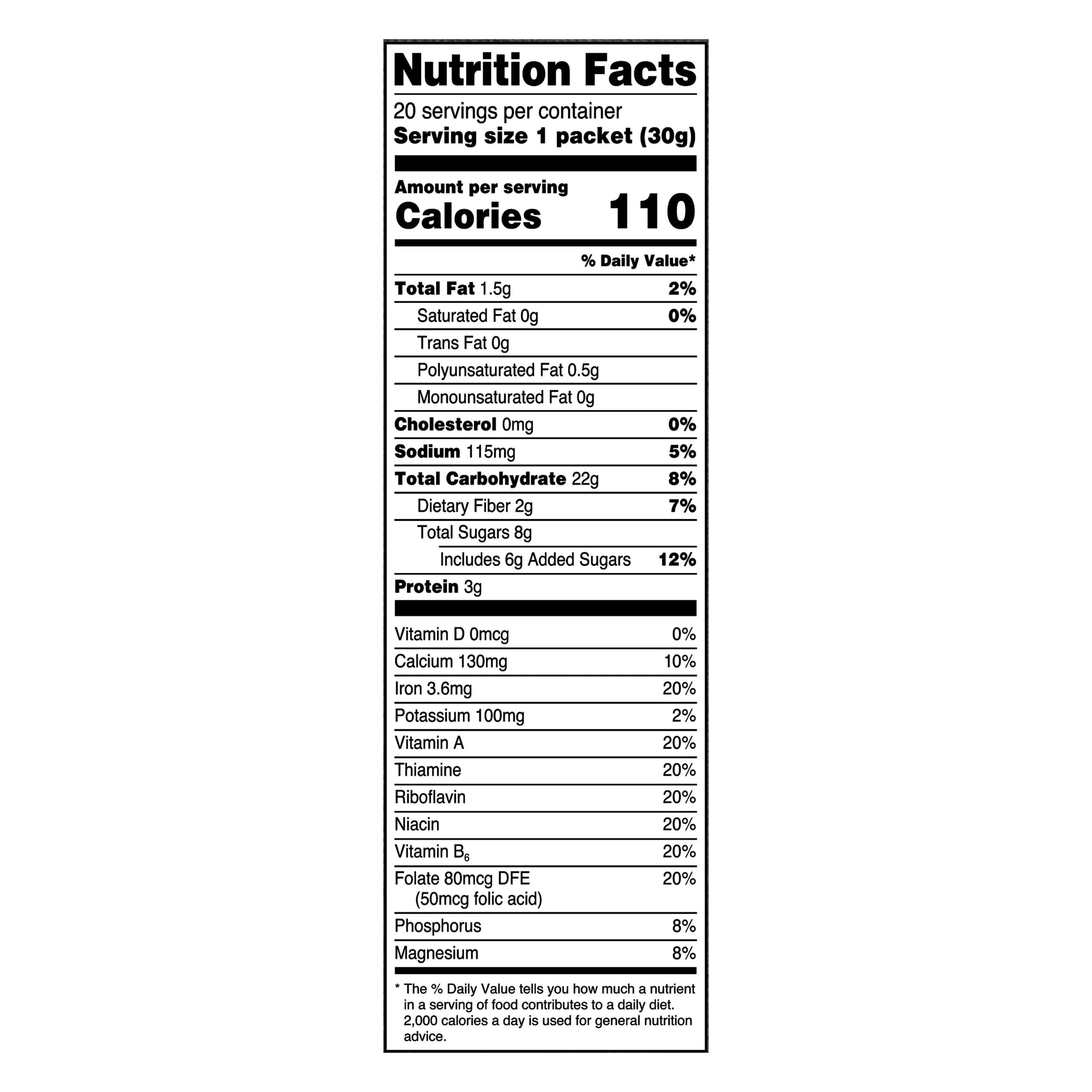 Great Value Strawberries and Cream Flavored Instant Oatmeal is a perfect blend of warm and sweet flavors. This oatmeal makes a yummy, satisfying breakfast but is also a good source of vitamins and minerals. The 20 individual serving packets are ideal for those busy mornings or take them with you to the office. It can easily be prepared in two minutes or less by mixing with boiling water or warming in the microwave with filtered water from the fridge. With so many ways to enjoy, you will want to stock up on Great Value Strawberries and Cream Flavored Instant Oatmeal.