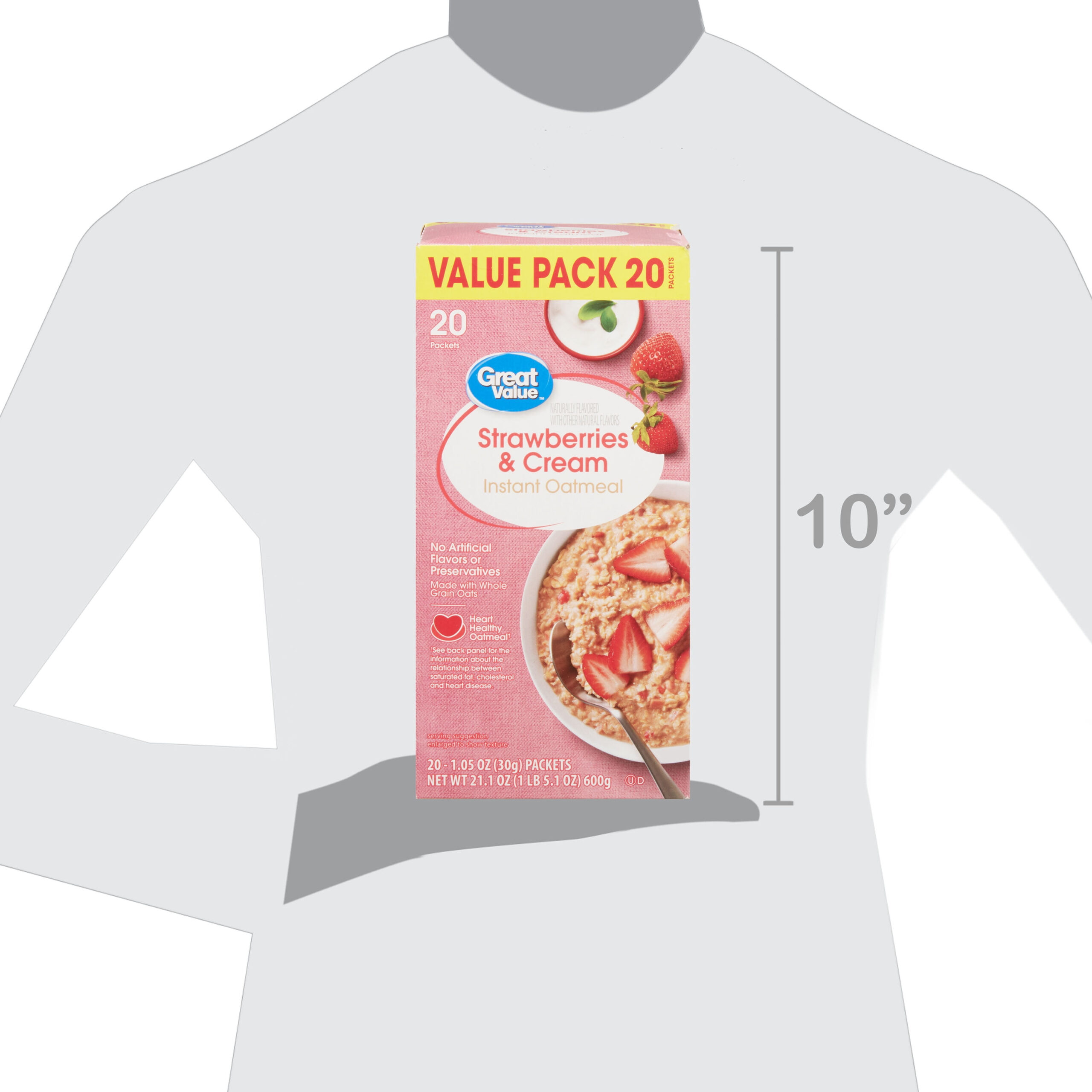 (4 pack) Great Value Strawberries & Cream Instant Oatmeal Value Pack, 1.05 oz, 20 Count