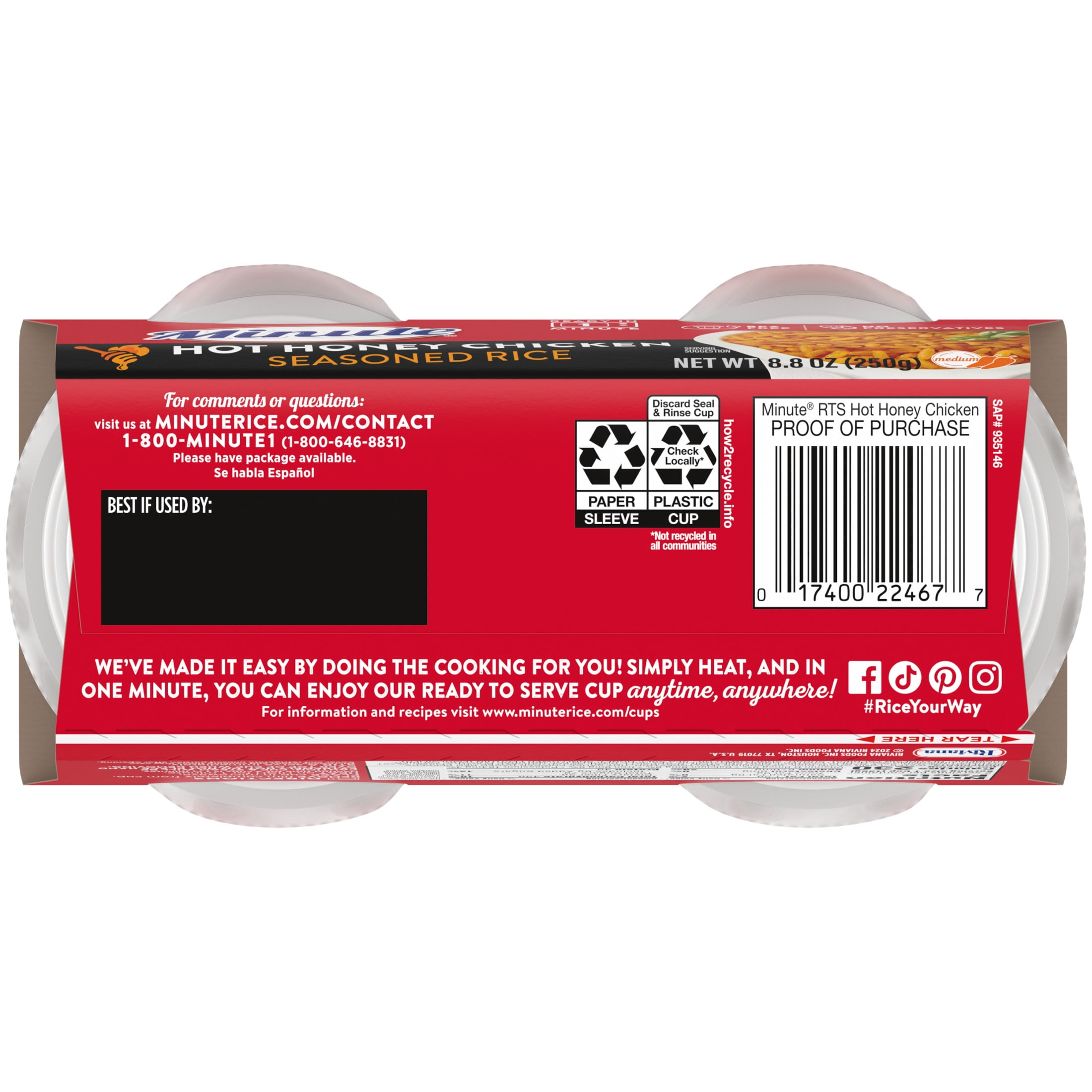 Minute Hot Honey Chicken Rice Cups are a convenient, perfect blend of a sweet and spicy rice option that is pre-cooked to complement any meal. Each 8.8 oz. pack includes 2 perfectly portioned BPA-Free cups with delicious hot honey rice, microwavable and ready to serve in just 1 minute for the perfect texture and flavor. No hassles. Elevate any meal quickly with these cups so you can spend less time cooking and have more time to enjoy. These cups are gluten-free, made with no preservatives, no artificial flavors, and come in a 100% recycled sleeve for packaging – in other words, there’s no better choice to add some sizzle to any meal, or to enjoy as a snack on the go!