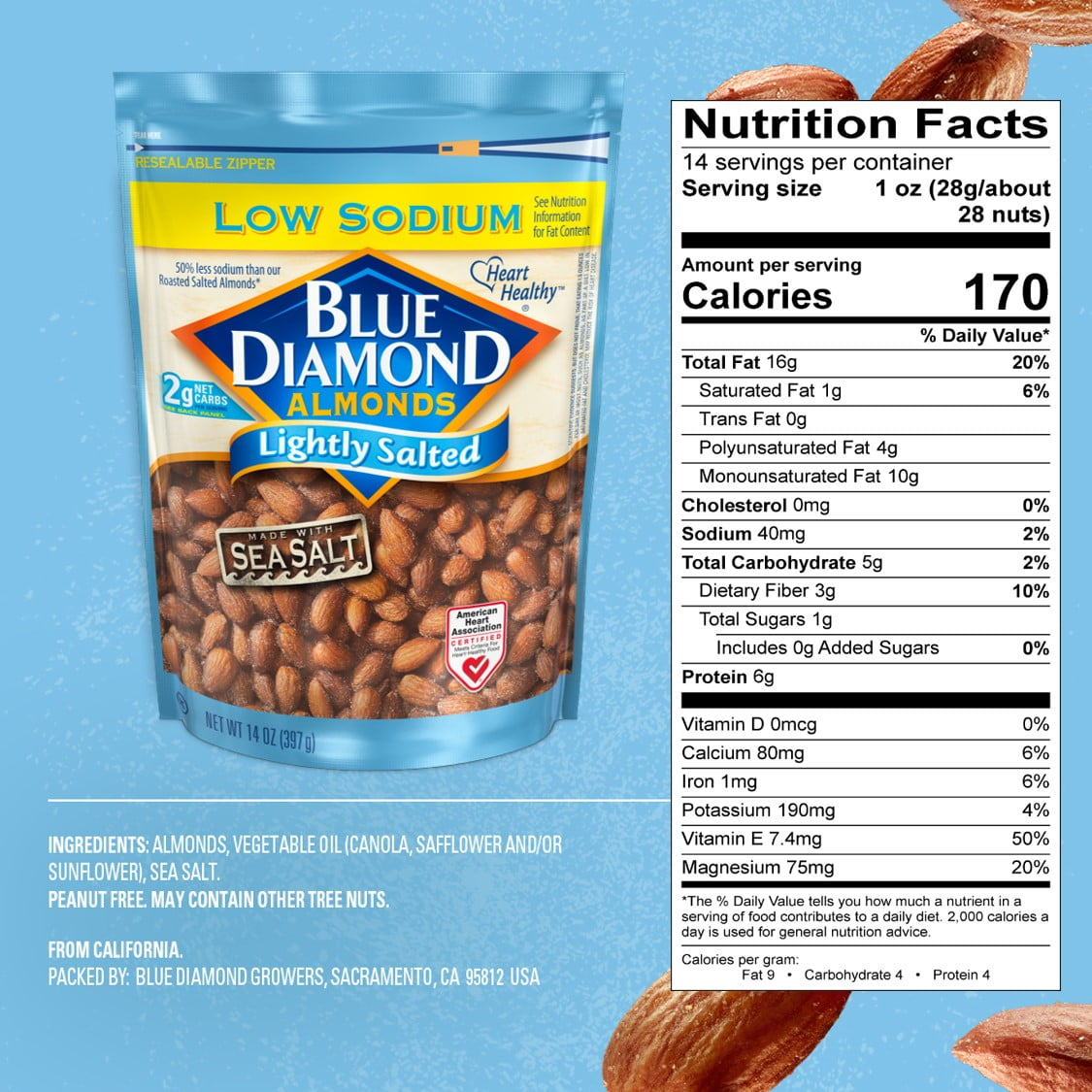 10 reviews for (6 pack) Blue Diamond Almonds, Lightly Salted Low Sodium Snack Nuts For Gluten Free Snacking, 14 oz.