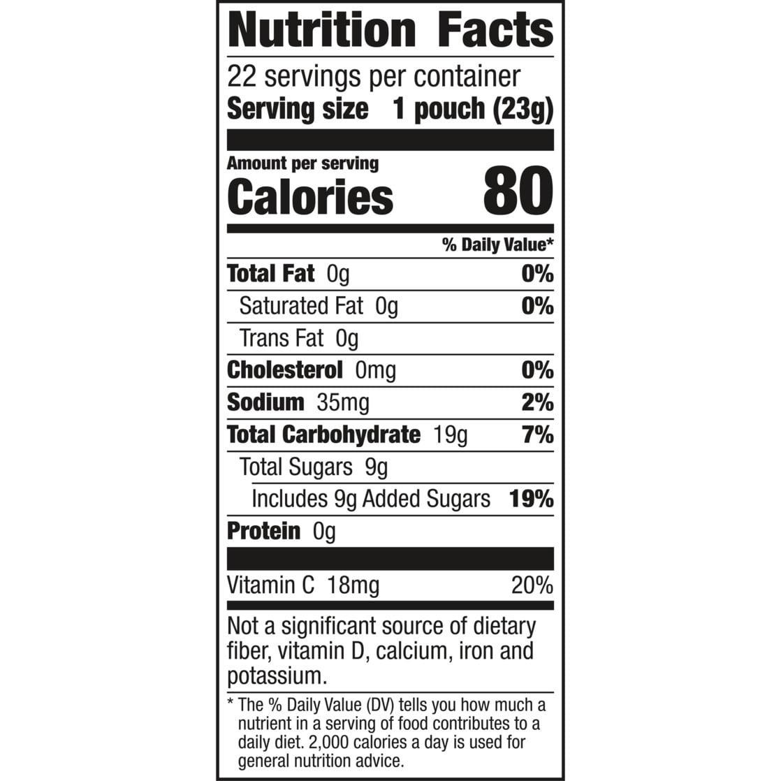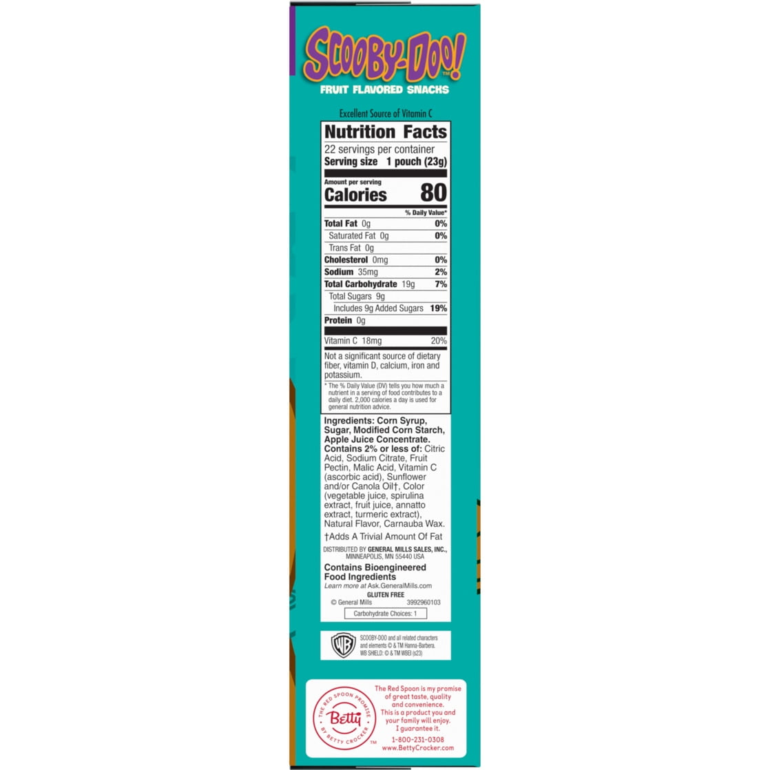Scooby Doo Fruit Flavored Snacks feature tasty treats shaped like your favorite Scooby Doo characters for maximum fun. Packaged for on the go convenience and portability, these fruit flavored snacks are a treat the whole family can enjoy. These pouches are perfect for including in a packed school lunch box or keeping on hand for a moment’s notice. Serve them as an after school snack that’s a win for you and your kids. Scooby Doo Fruit Flavored Snacks are an ideal addition to your pantry and grocery routine. Beyond their great taste, they’re made with no colors from artificial sources. They’re also an excellent source of vitamin C, gluten free, and fat free, with 80 calories per serving. This value pack contains 22 fruit flavored snack pouches in total.