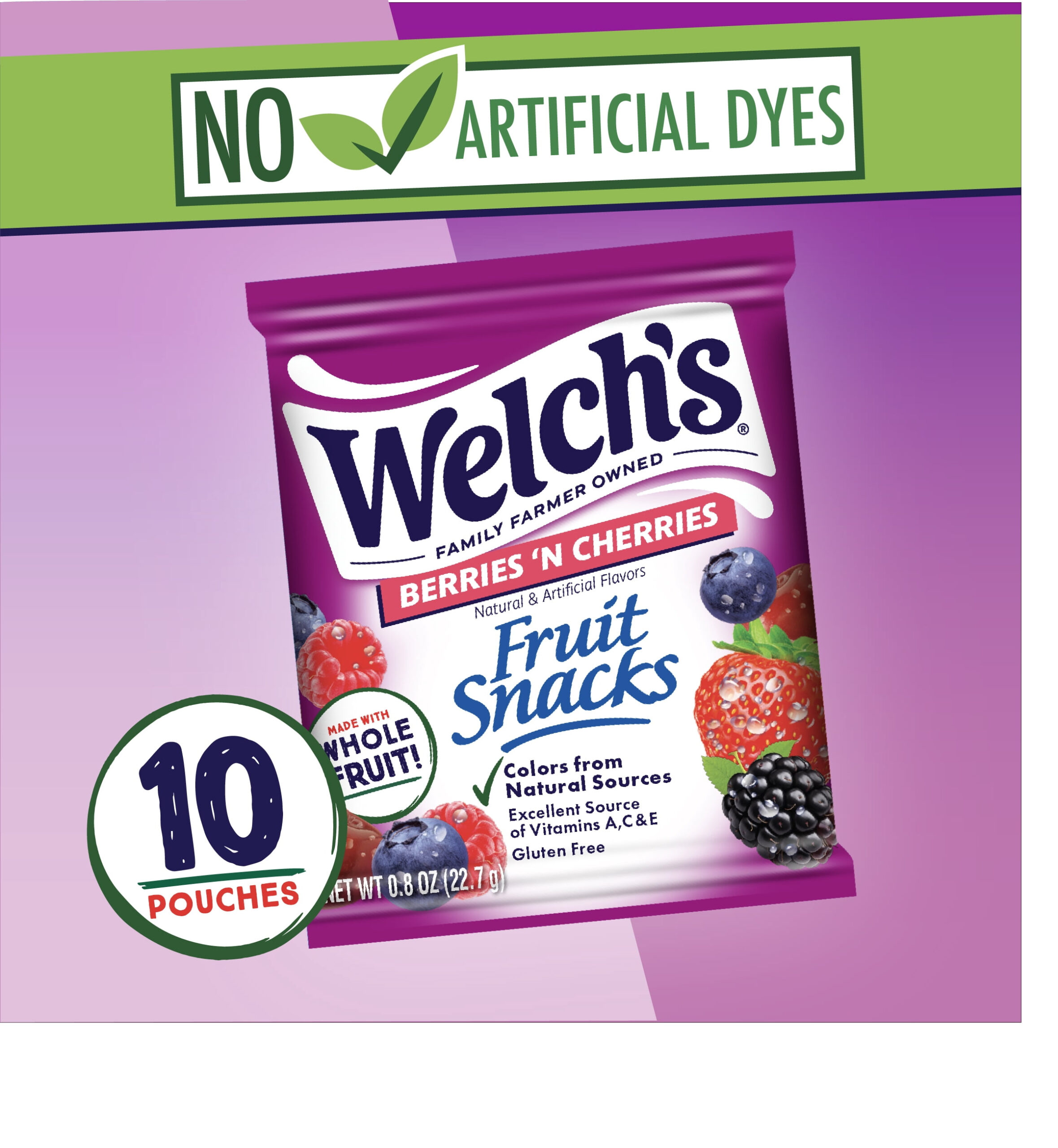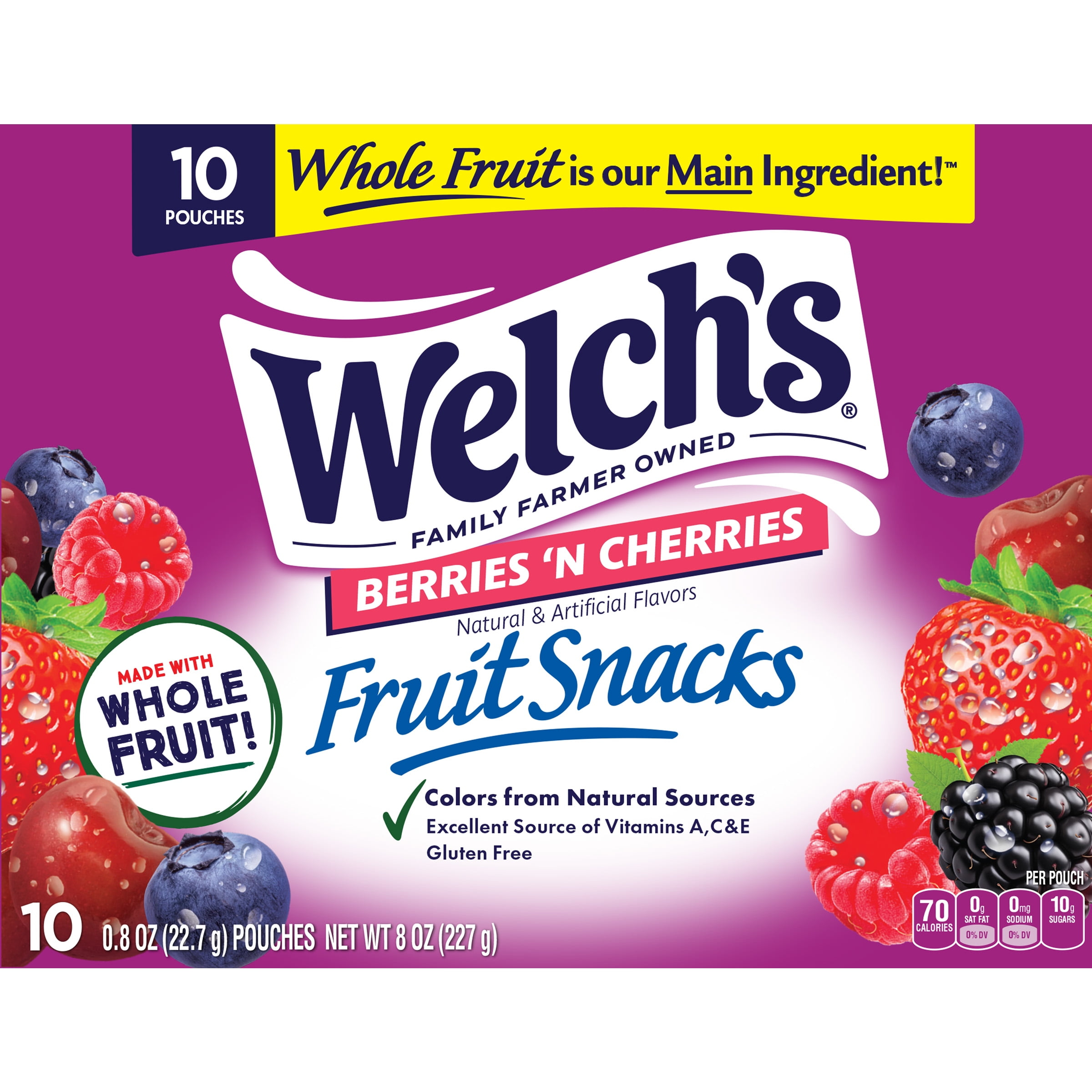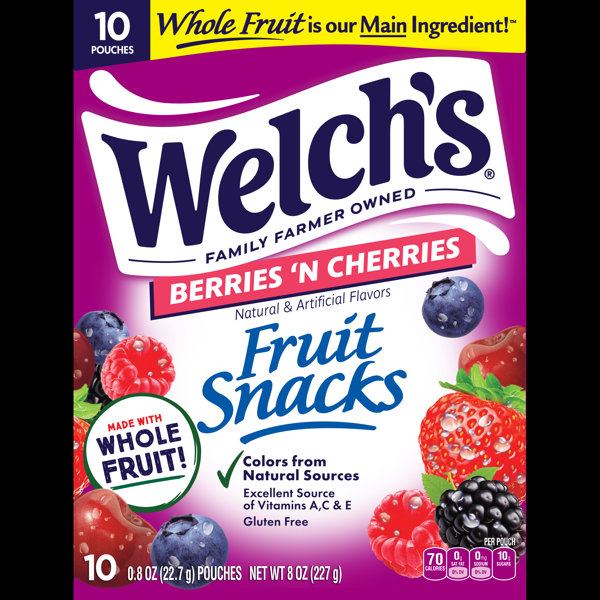 (8 pack) Welch’s Fruit Snacks Gluten-Free Berries ‘N Cherries Kids Snacks, Soft Snacks, 0.8 oz, 10 Count
