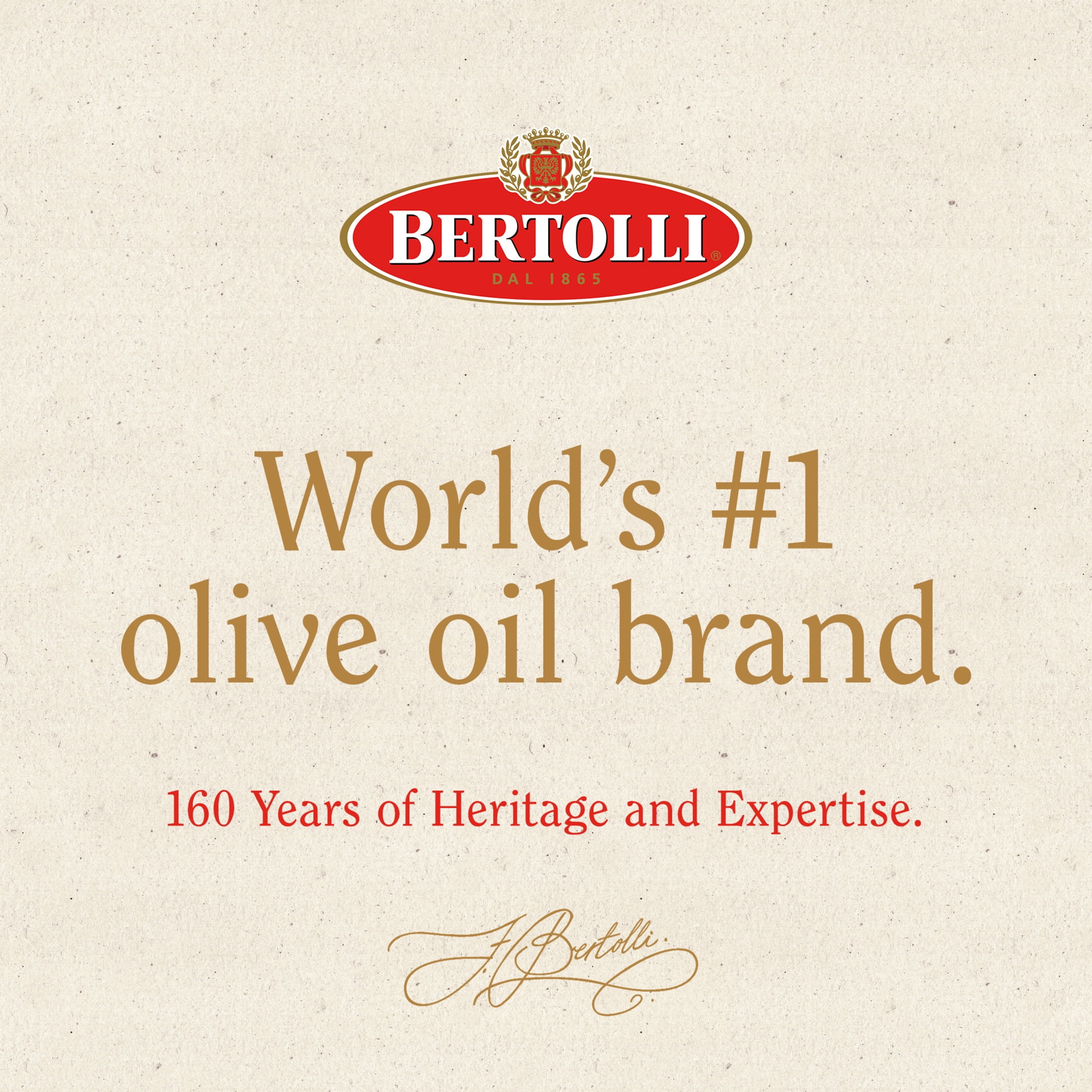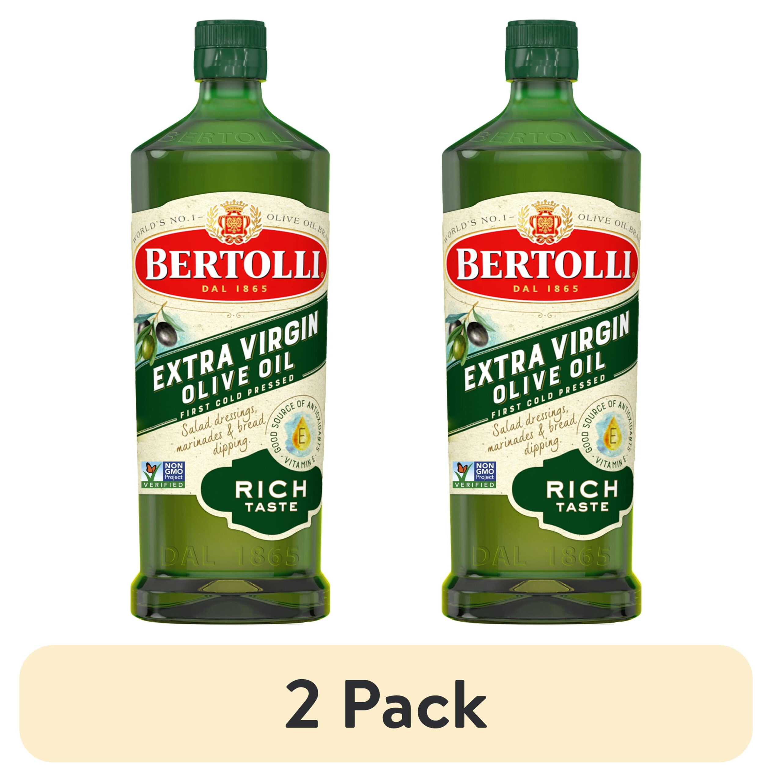 Bertolli Extra Virgin Olive Oil Rich Taste embodies over 160 years of tradition. Crafted with care, each dark bottle brings Mediterranean flavors to your table, maintaining the highest quality from grove to plate. Cold pressed for full-bodied fruity flavor, this olive oil is free from processing, delivering a bold yet delicate taste. Versatile for salad dressing, vinaigrette, bread dipping, marinades, pasta dishes and more, our EVOO boasts a 365°F smoke point and 0.3% max acidity. This EV Bertolli olive oil is Non-GMO Project Verified and made from the finest olives. As the world’s #1 Olive Oil brand, Bertolli promises unparalleled excellence, inviting you to savor the richness of good Mediterranean living in every drop. The good living recipe.