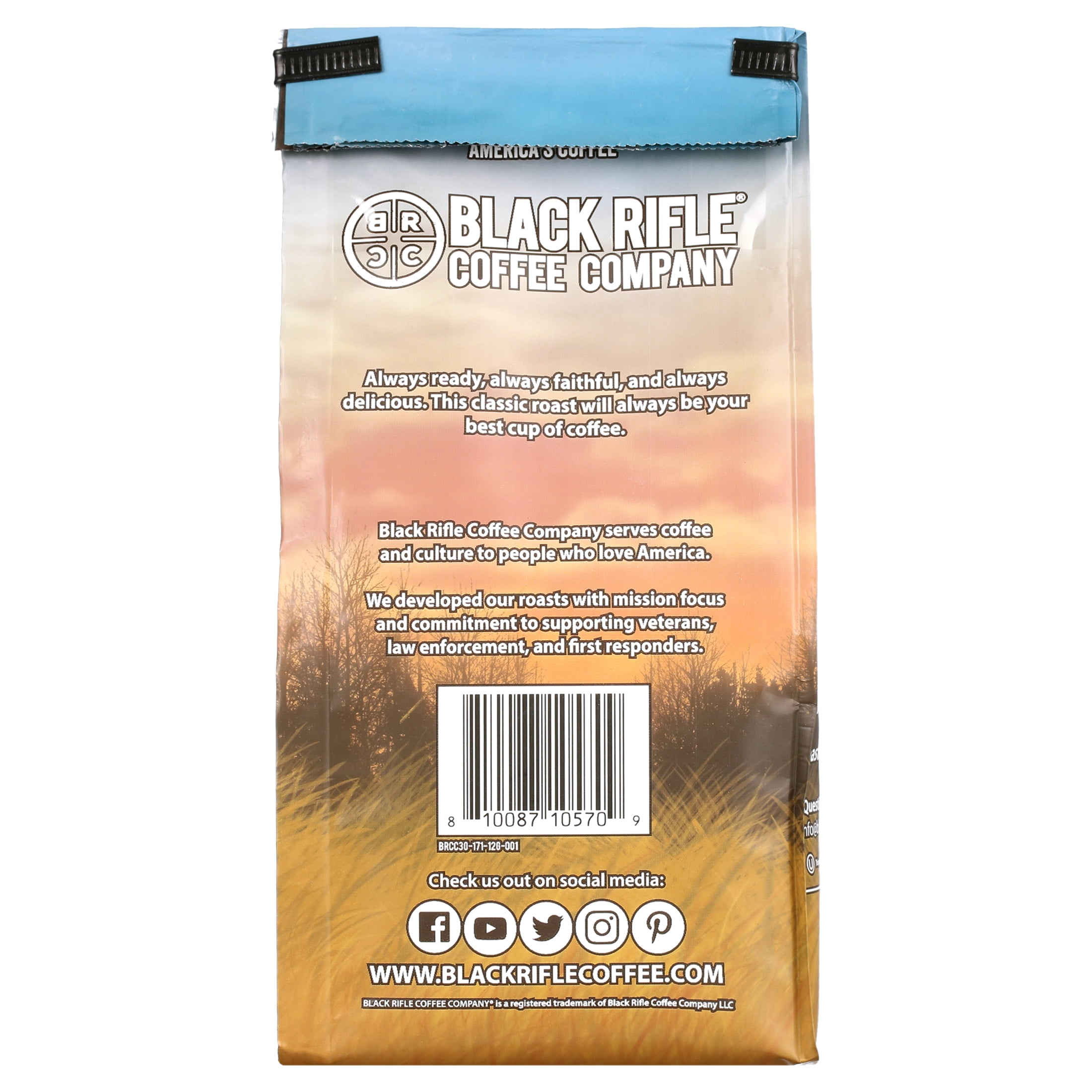 Black Rifle Coffee Company Loyal Spirit, Light Roast, Ground Coffee, 12 oz, is a smooth light roast. Loyal Spirit coffee pops with notes of bright citrus accompanied by notes of chocolate and berries. This light roast is for those who like a very drinkable, smooth gluten-free coffee with memorable tasting notes. Each 12oz bag will make about 16 cups of coffee. The various roasts of Black Rifle Coffee Company provide everyone from the beginner to the advanced coffee drinker with a different way to experience our high-quality coffee. Light Roast offers a smoother, more easy-drinking experience. Medium Roast has the most balanced flavor, aroma, and acidity. Dark Roast brings a more heavy body and richer flavor with lower acidity. Extra Dark Roast delivers the richest, most smoky flavor from our coffee roaster. Shelf-Stable.