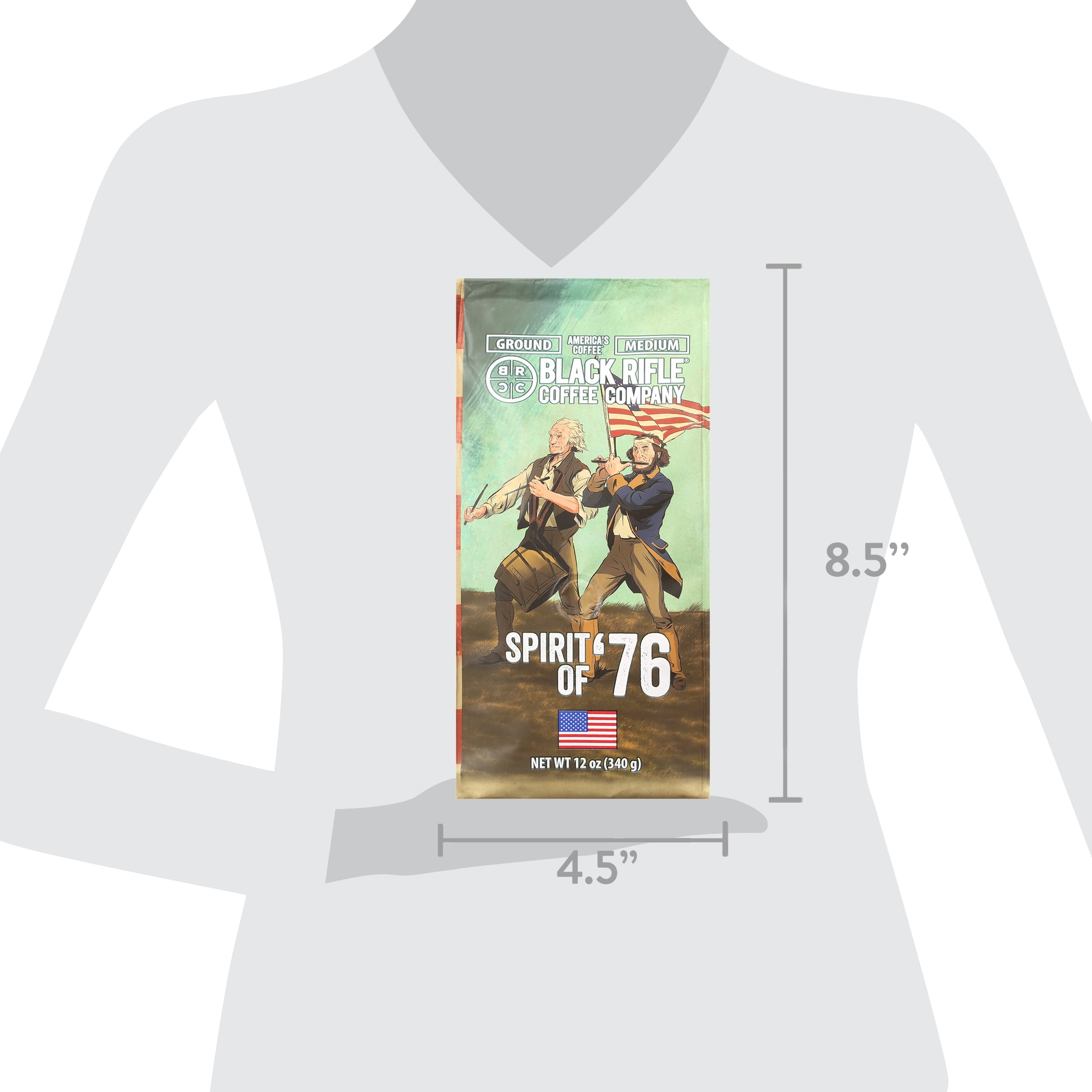 Black Rifle Coffee Company Spirit of ’76, Medium Roast, Ground Coffee, 12 oz, is a medium roast. It’s one of our revolutionary coffees that brings tasting notes of citrus, balanced with notes of sweet caramel and almonds. Legend has it that George Washington had a mug of this fine gluten-free medium roast coffee in his hand as he sailed across the Delaware. Each 12oz bag of coffee will make about 16 cups. The various roasts of Black Rifle Coffee Company provide everyone from the beginner to the advanced coffee drinker with a different way to experience our high-quality coffee. Light Roast offers a smoother, more easy-drinking experience. Medium Roast has the most balanced flavor, aroma, and acidity. Dark Roast brings a more heavy body and richer flavor with lower acidity. Extra Dark Roast delivers the richest, most smoky flavor from our coffee roaster. Shelf-Stable, Gluten-Free.