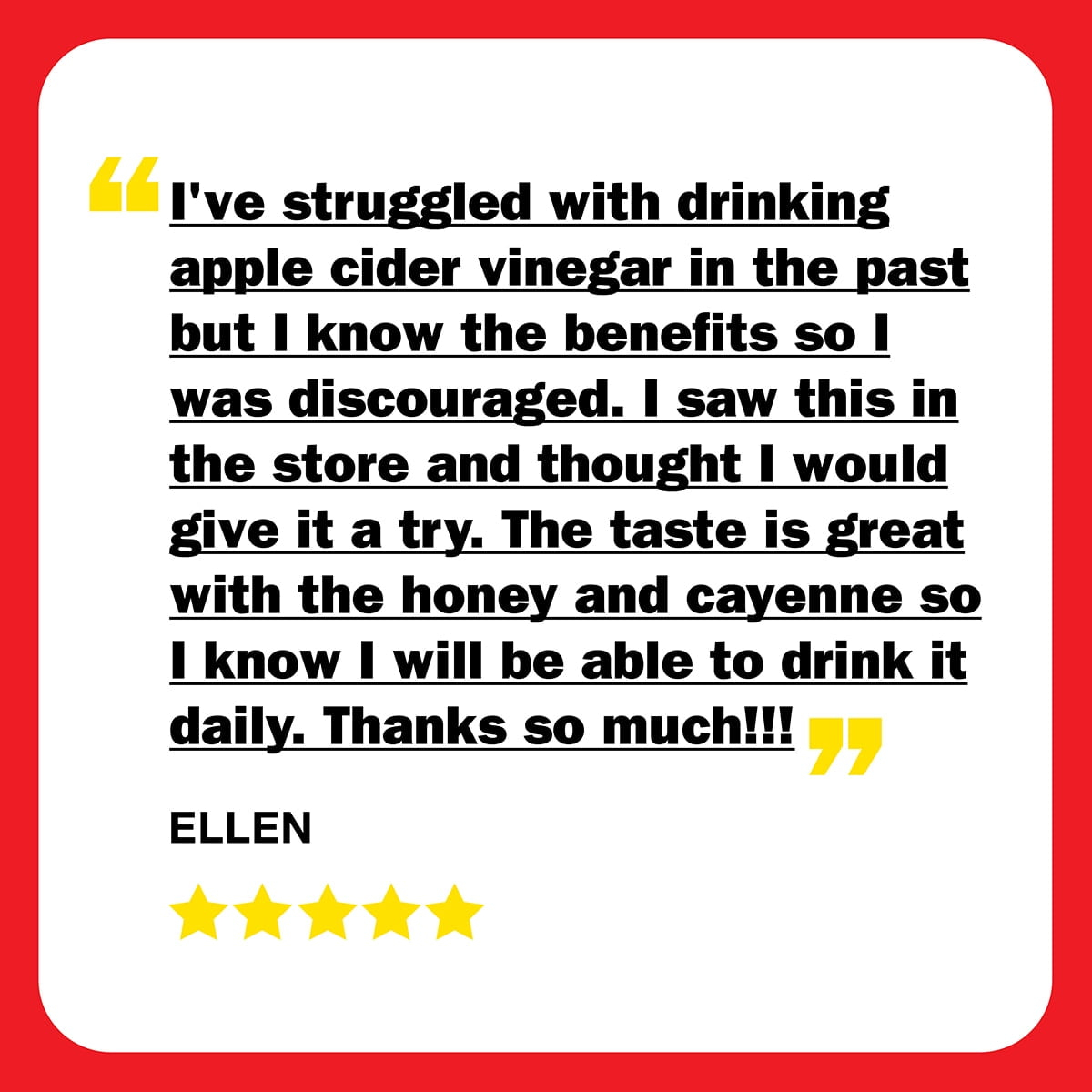 This is the drink to get your gut under control.. Good drink to pick up and stop the G.L issues. Has a sweet Honey taste, strong Cayenne hot pepper taste that heals you and the Apple Cider,no better.