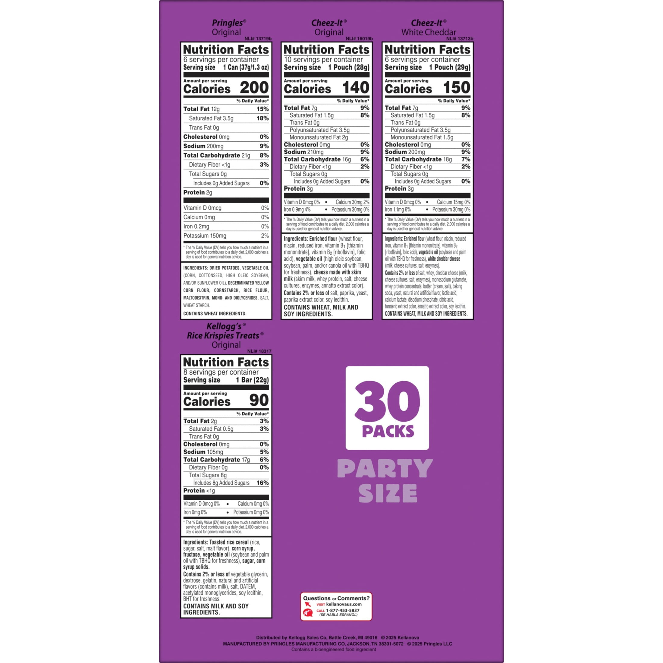 Cheez-It, Pringles & Rice Krispies Variety Pack Lunch Snacks, 30.1 oz, 30 Count