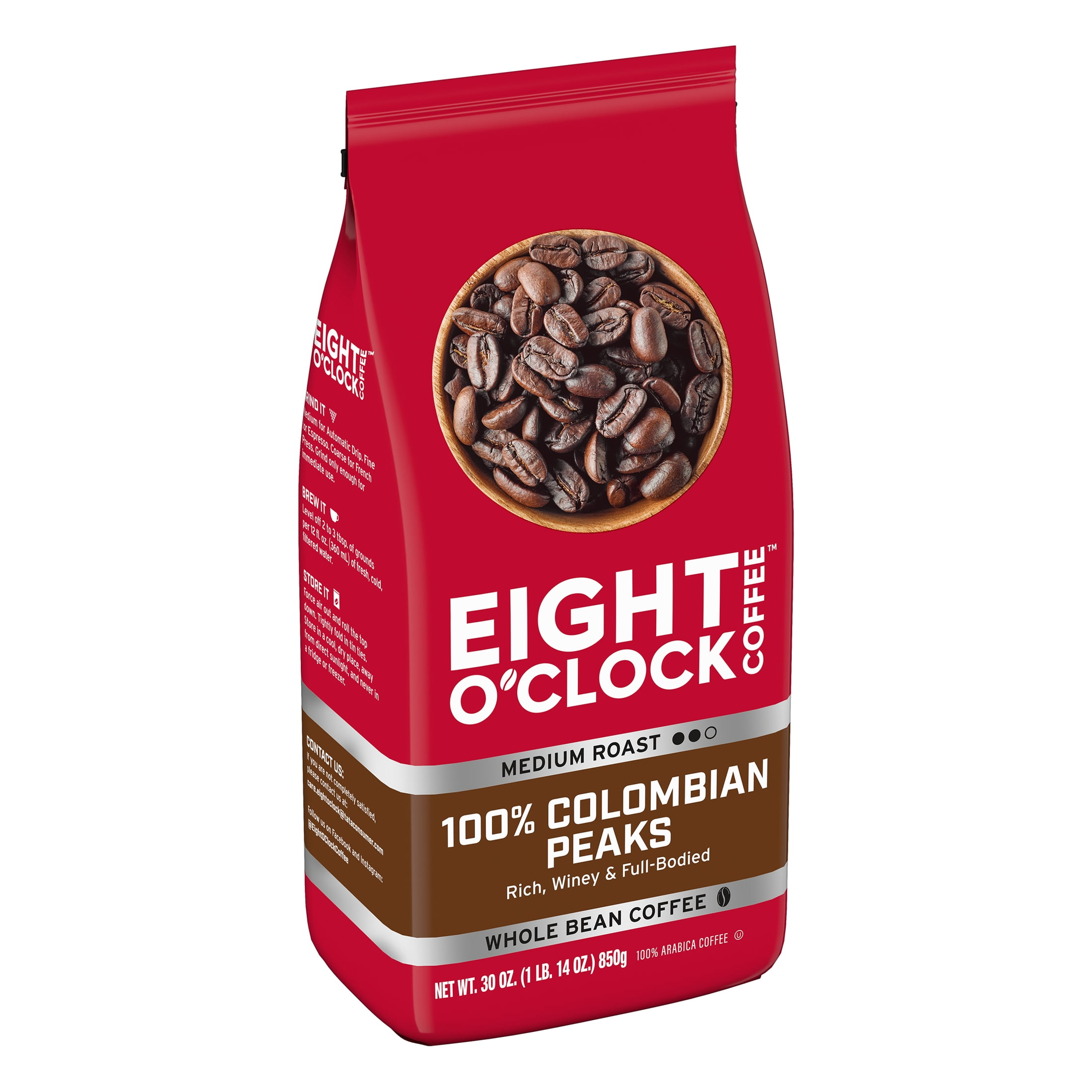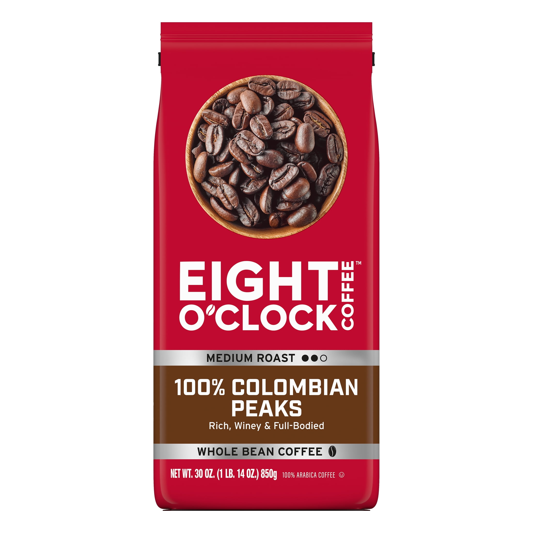 Eight O’Clock Coffee Medium Roast Whole Bean 100% Colombian Peaks Coffee 30 oz