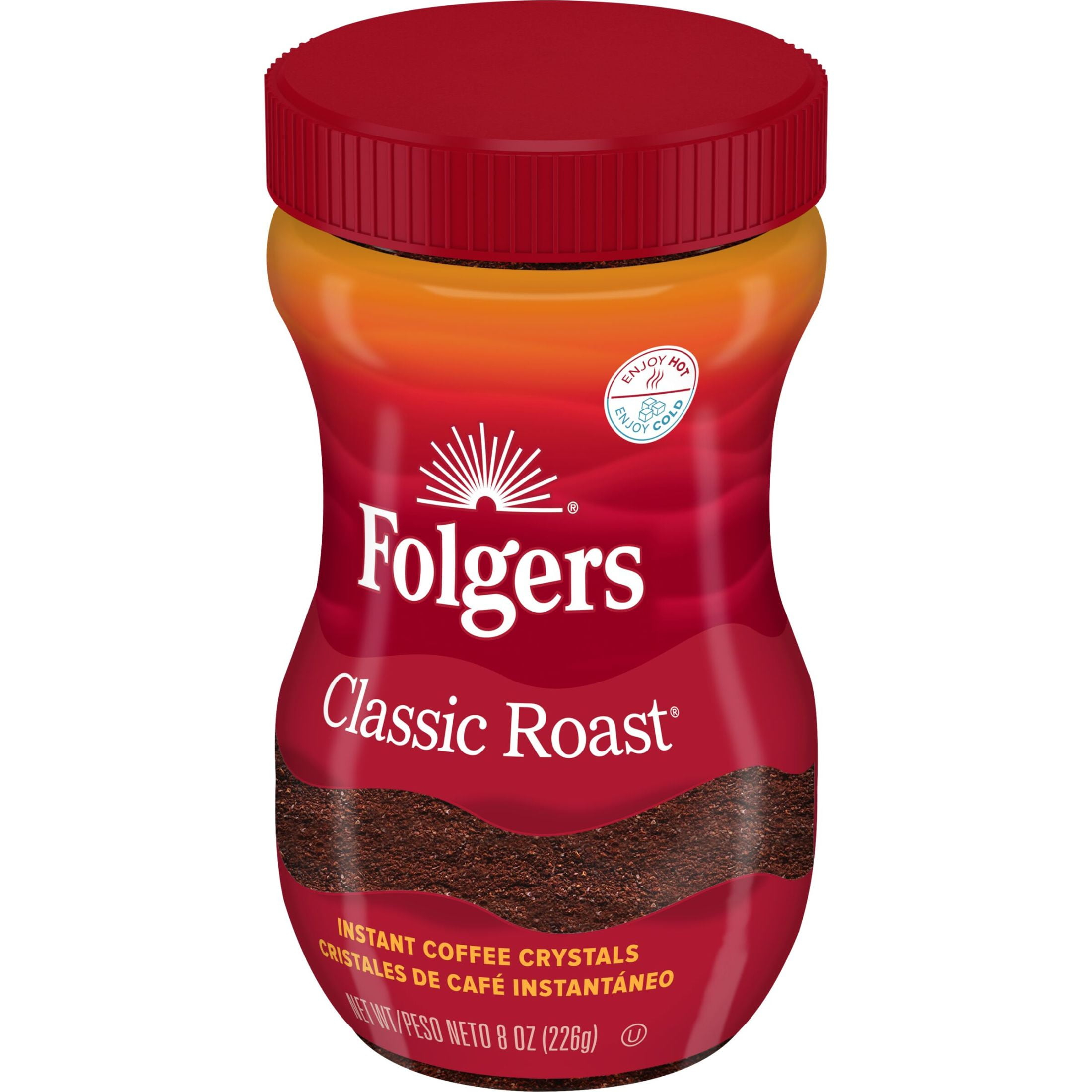 Get the Folgers coffee experience you love in an instant. Folgers Classic Roast Instant Coffee crystals are the result of unique processing to create a rich aroma for you to enjoy alongside deliciously smooth flavor in every sip. Making a cup is easy: just add one (1) rounded teaspoon of instant coffee to six (6) fluid ounces of water or milk, stir it up and adjust to your taste preference. It mixes easily and dissolves in seconds, hot or cold. Try it in a hot mocha latte or a cool, refreshing whipped coffee – or just mix it up and get out the door. No matter how your prep it, Folgers instant coffee does the trick, quick. Add a jar to your coffee station today.