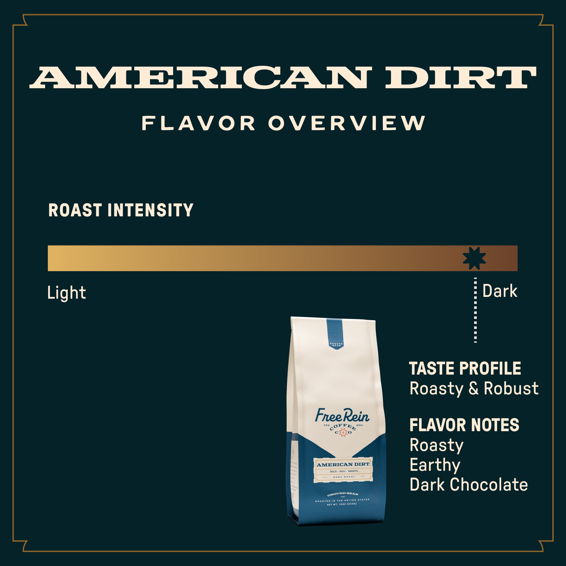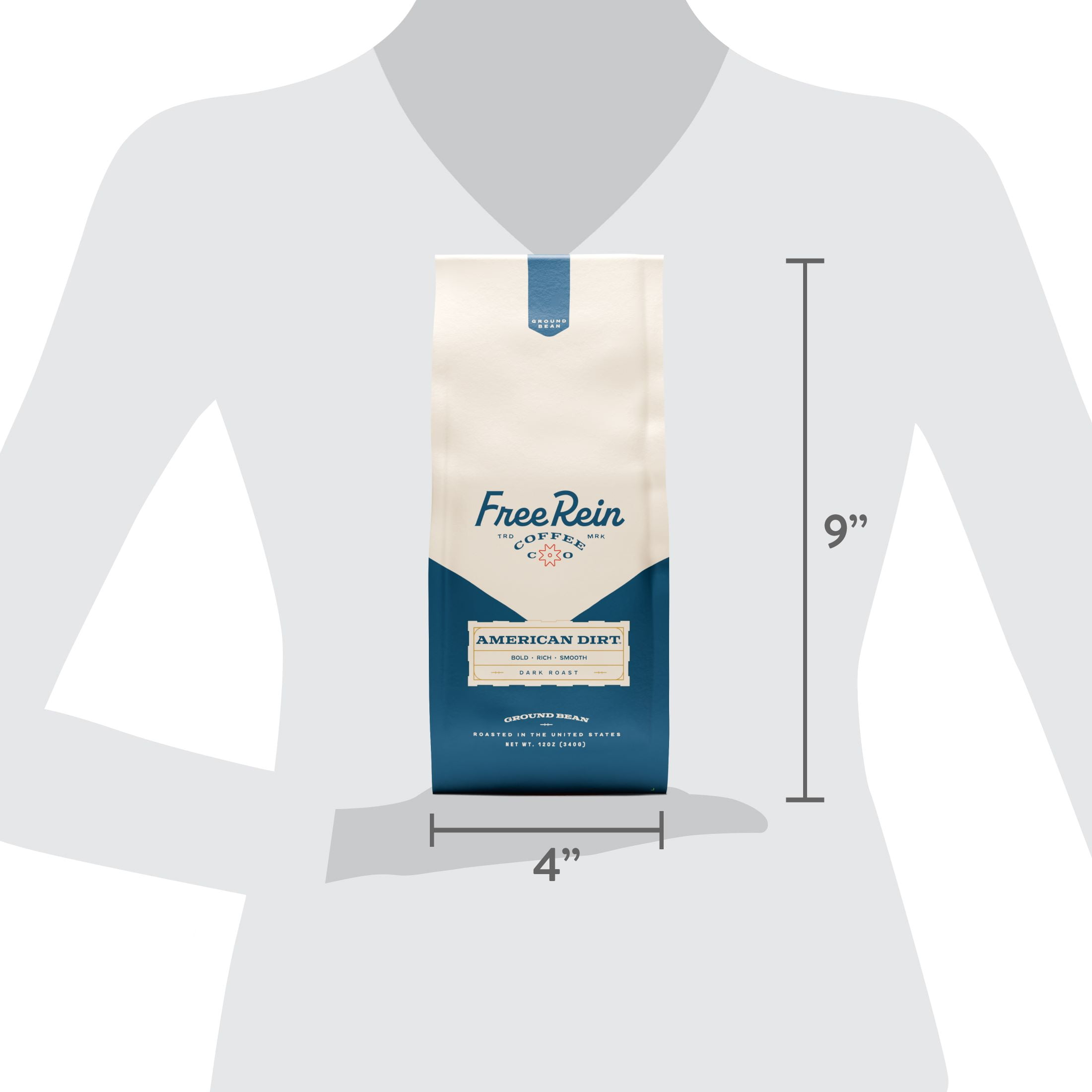 Free Rein Coffee Company, American Dirt Dark Roast Ground Coffee, Bold & Smooth, Roasted in America, 12oz Bag