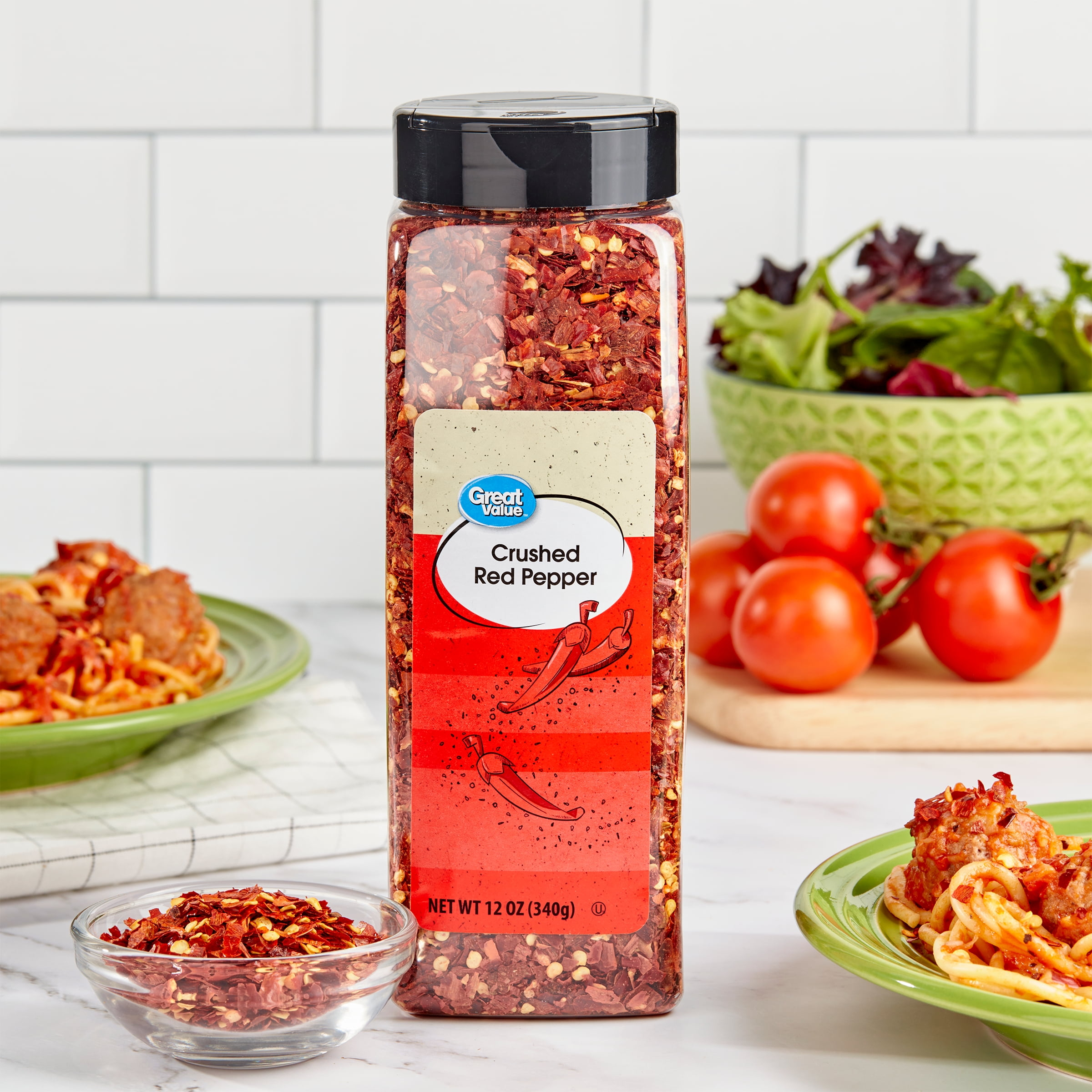 A pantry staple for adding bold heat, Great Value Crushed Red Pepper delivers a spicy kick that brings extra flavor to everyday meals. Made from crushed red chili peppers, this seasoning adds spice to pizza, pasta, soups, sauces, and roasted vegetables. It is also great for sprinkling over eggs, avocado toast, casseroles, marinades, and homemade dressings when you want a little extra bite. The large 12-ounce bottle is ideal for frequent cooking, entertaining, or keeping on hand when meals call for more spice. With an easy-to-use shaker top, it is simple to control how much spice you add to each dish. Boost your favorite recipes with the Great Value Crushed Red Pepper and enjoy big flavor with every sprinkle.