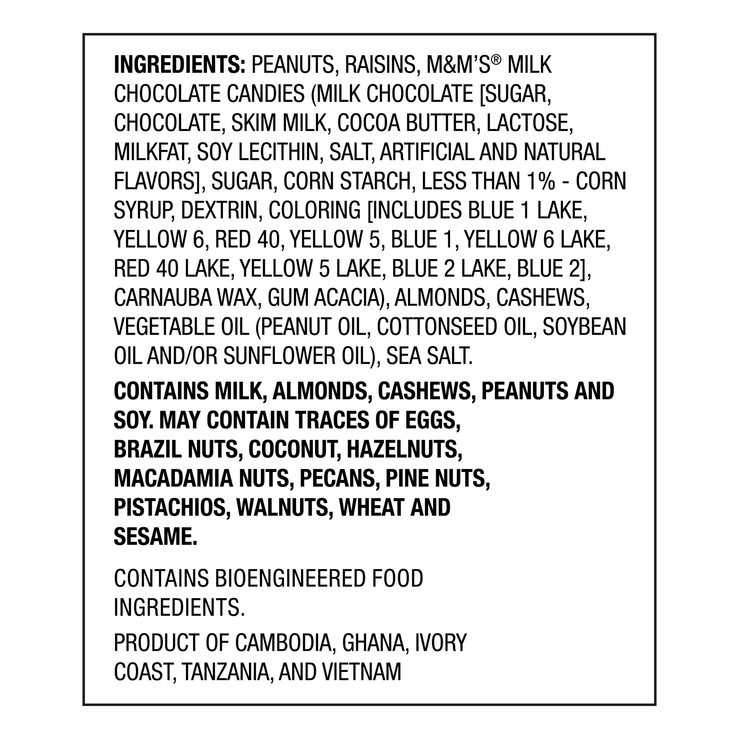 Get the sweet combination of healthy fats, energizing carbohydrates, and belly-filling protein that you need to help you power through your day with our Great Value Mountain Trail Mix. This mix’s irresistible flavor combination consists of a delicious variety of peanuts, raisins, milk chocolate candies, almonds, and cashews. Each resealable family-size bag contains 40 ounces (about 38 servings) making it an ideal snack to take along in your backpack for your next hike or camping trip, pack in your child’s school lunch, or stash in your office desk drawer. Fuel your body and satisfy your sweet tooth with our Great Value Mountain Trail Mix.