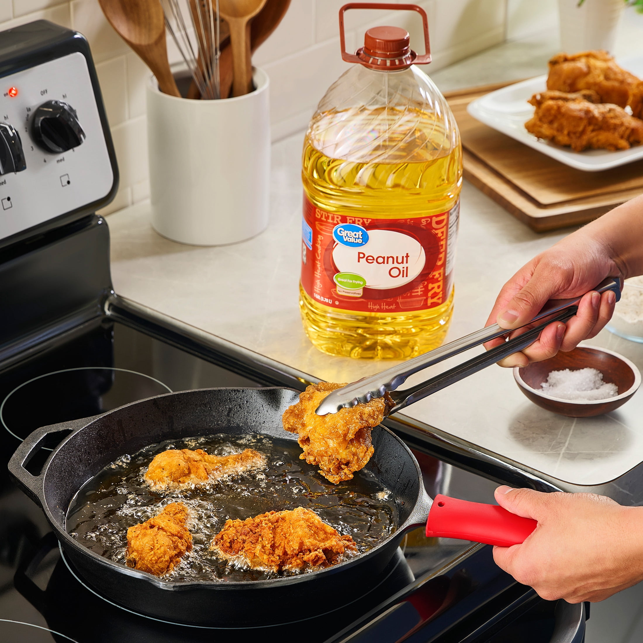 The great value peanut oil 1 gallon bottle is what I usually buy at Walmart. Peanut oil is the only oil that I trust to fry in because seed oils cause inflammation. It leaves my food tasting delicious. I enjoy cooking with it and it’s cost effective. Thank you Walmart!