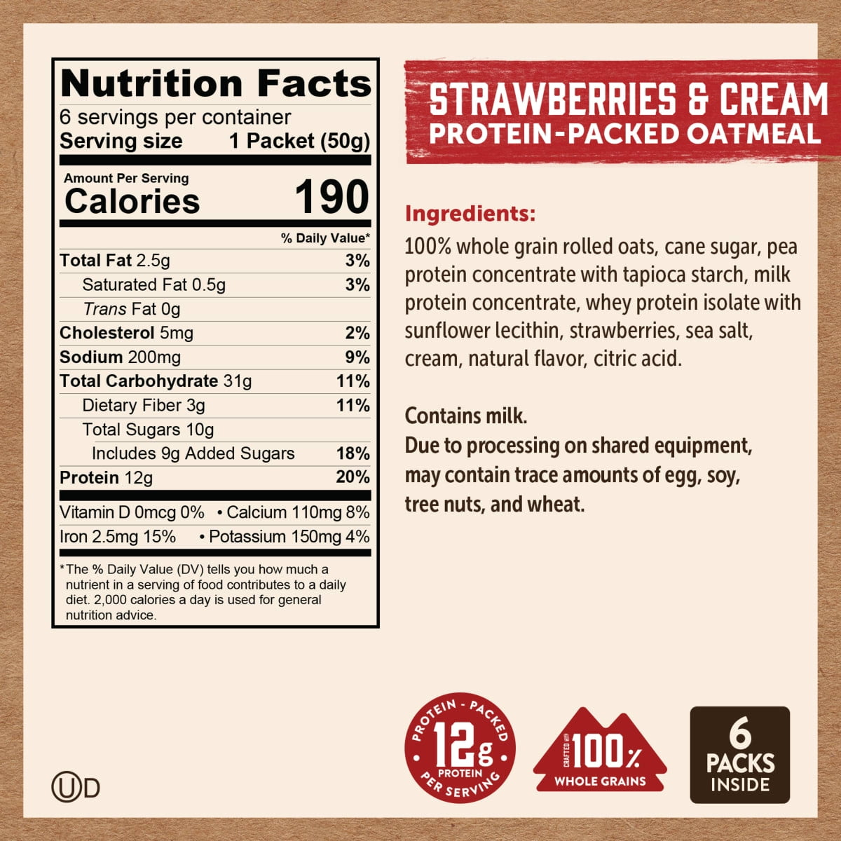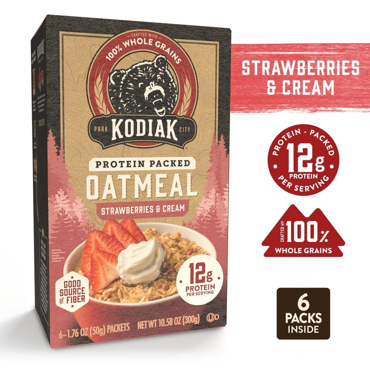 Kodiak Protein-Packed Strawberries and Cream Instant Oatmeal Packets, 1.76 oz (6 Count)