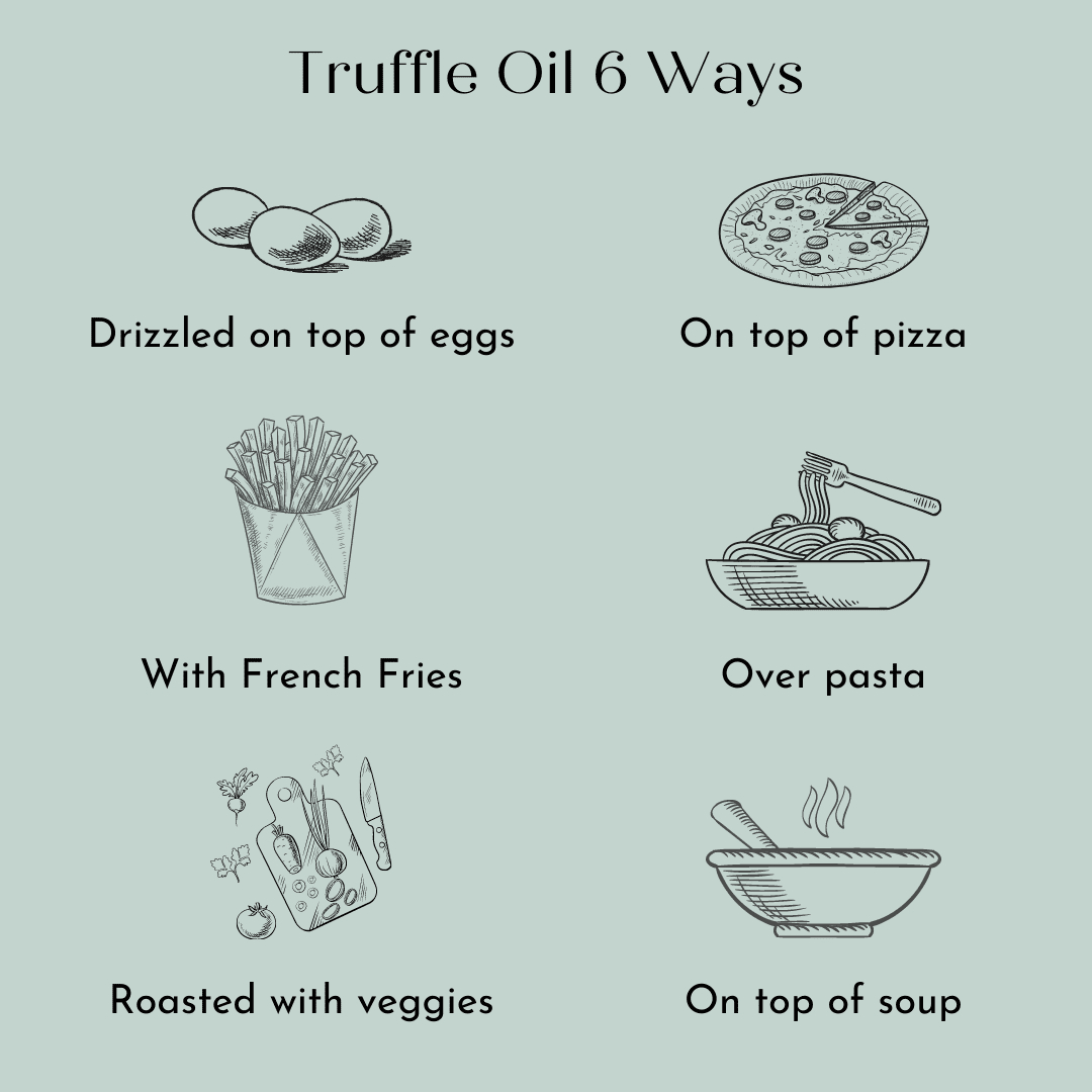 I love this truffle oil . I use a little of it on eggs, pasta and many other things as a finishing touch. A little tiny bit is all you need. Makes my meals feel and taste fancy lol. The container looks lovely on my counter.