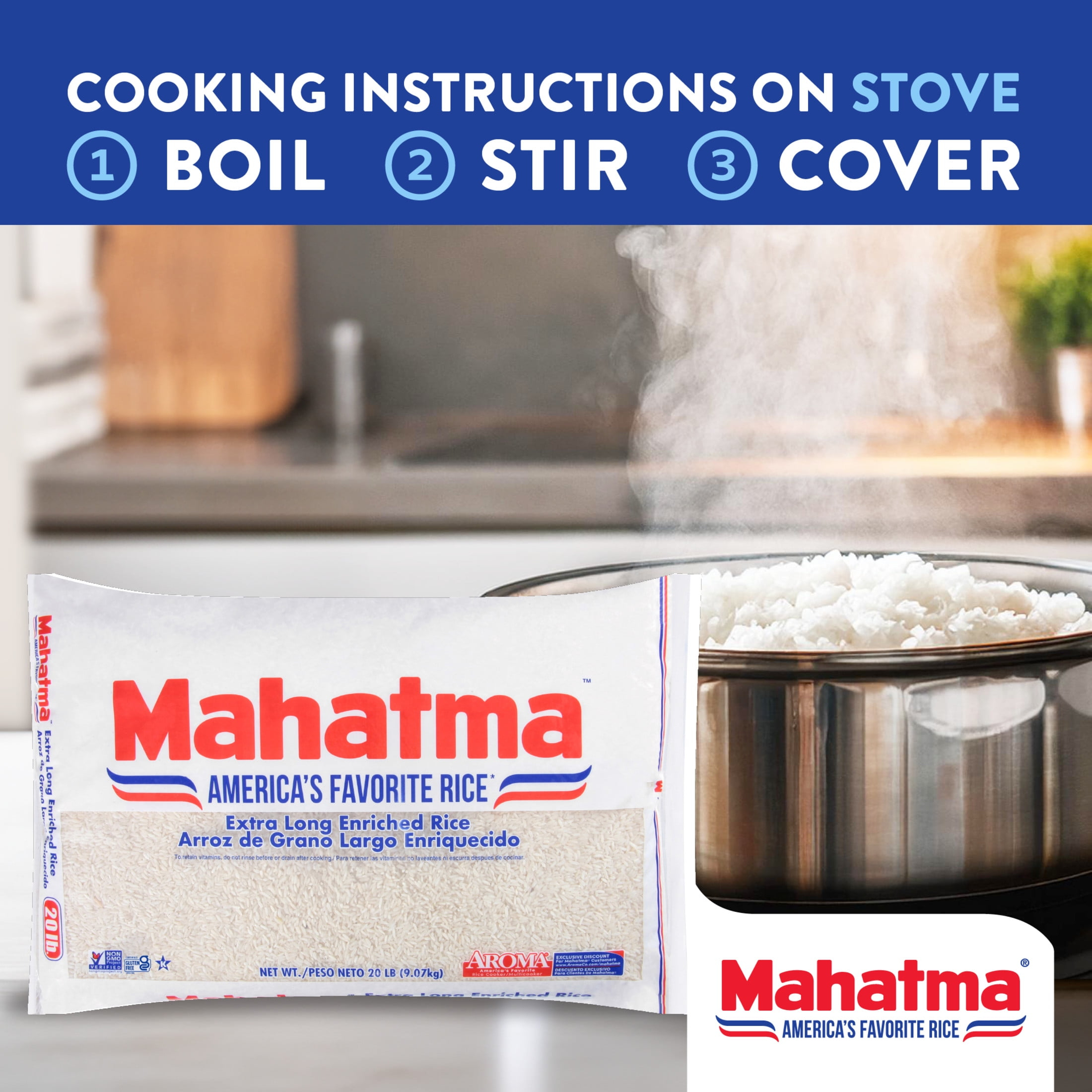 Mahatma Rice Unites Mahatma White Rice is a traditional family favorite extra-long rice so it releases less starch during cooking and helps you achieve that perfect separate but fluffy texture. This rice pairs excellently with a wide variety of dishes for breakfast, lunch, or dinner, and is Non-GMO, free of MSG, and contains no added preservatives. About Riviana Foods Inc. Mahatma is a Riviana Foods Inc. brand. Riviana brands are well known for their quality and excellence, leading the rice industry in innovation, and providing high-quality products you can be proud to serve your family.