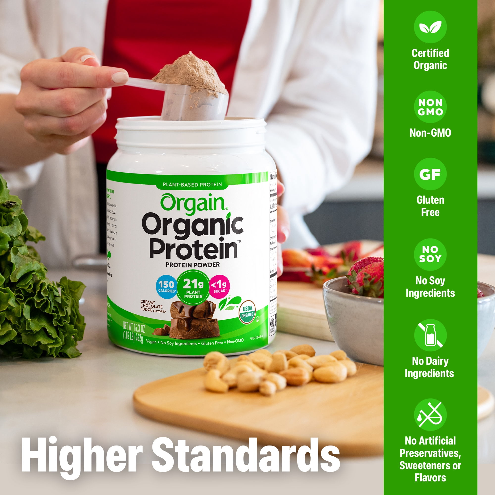 What makes this the #1 plant protein powder brand in the U.S.^? Is it the smooth and creamy flavor? The delicious taste without the grit? The fact that it serves up 21 grams* of organic, vegan protein? Or that it’s so easy to prepare? Truthfully, it’s all of this and so much more. Our protein blend consists of organic peas, brown rice, mung bean, and chia seeds, to provide a complete protein with all nine essential amino acids. Not only does our plant-based protein powder serve up the tastiest, creamiest protein, but it’s also made with clean ingredients and higher standards in mind! Enjoy a protein powder that’s certified USDA organic, non-GMO, and made without soy, dairy, gluten, or artificial preservatives, sweeteners or flavors. On top of all of that, it boasts 7g* prebiotic + fiber, <1g of sugar*, and has 150 calories.* Plus, when it comes to flavor and versatility, this powder delivers. Mix our plant-based protein powders with your favorite smoothies, almond or oat milk, and even baking mixes to add a good, clean boost. At Orgain we celebrate taste, and we take it seriously because we recognize that part of living a vibrant life is loving what you eat. Go ahead, fuel up with the powder that’s a treat for both your taste buds and your body so you can have energy to keep on going! ^Source: Circana, Total US MULO, Latest 52 weeks ending 4.21.24 *per serving