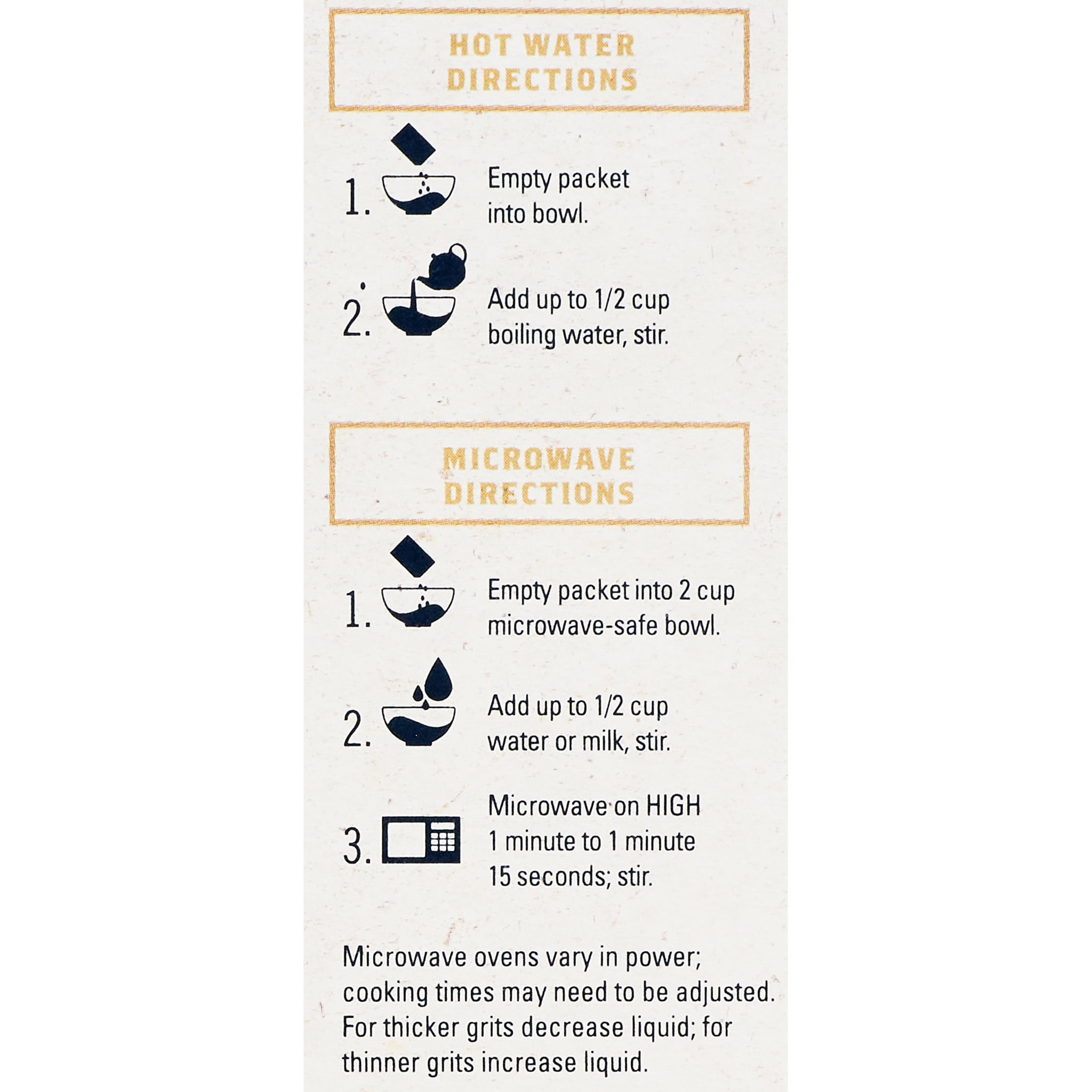 I cook two packages in a deep cereal bowl and cook them in the microwave for two minutes and 30 seconds often I add a tablespoon of butter before microwaving this product is delicious. Reminds me of Midwestern breakfast and it’s priced well and it’s a big treat for me. My store is often out and I really I am disappointed when that occurs.