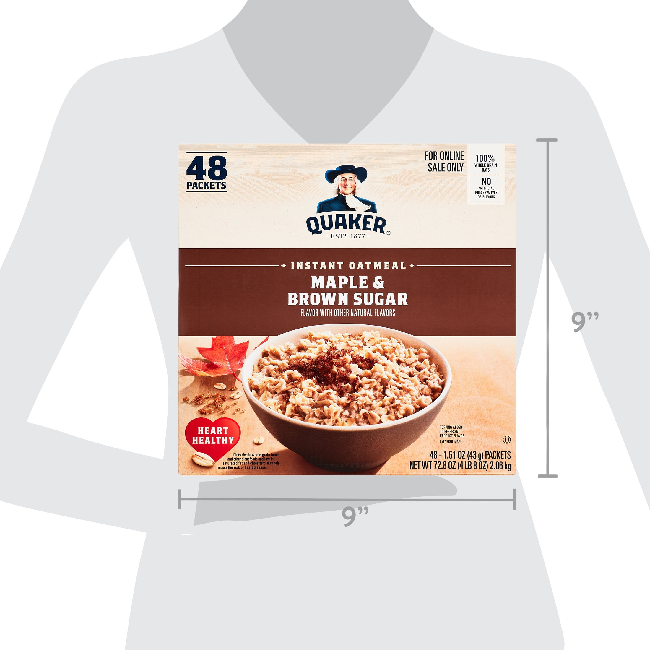 Quaker Instant Oatmeal, Maple & Brown Sugar, Quick Cook Oatmeal, 48 Packets