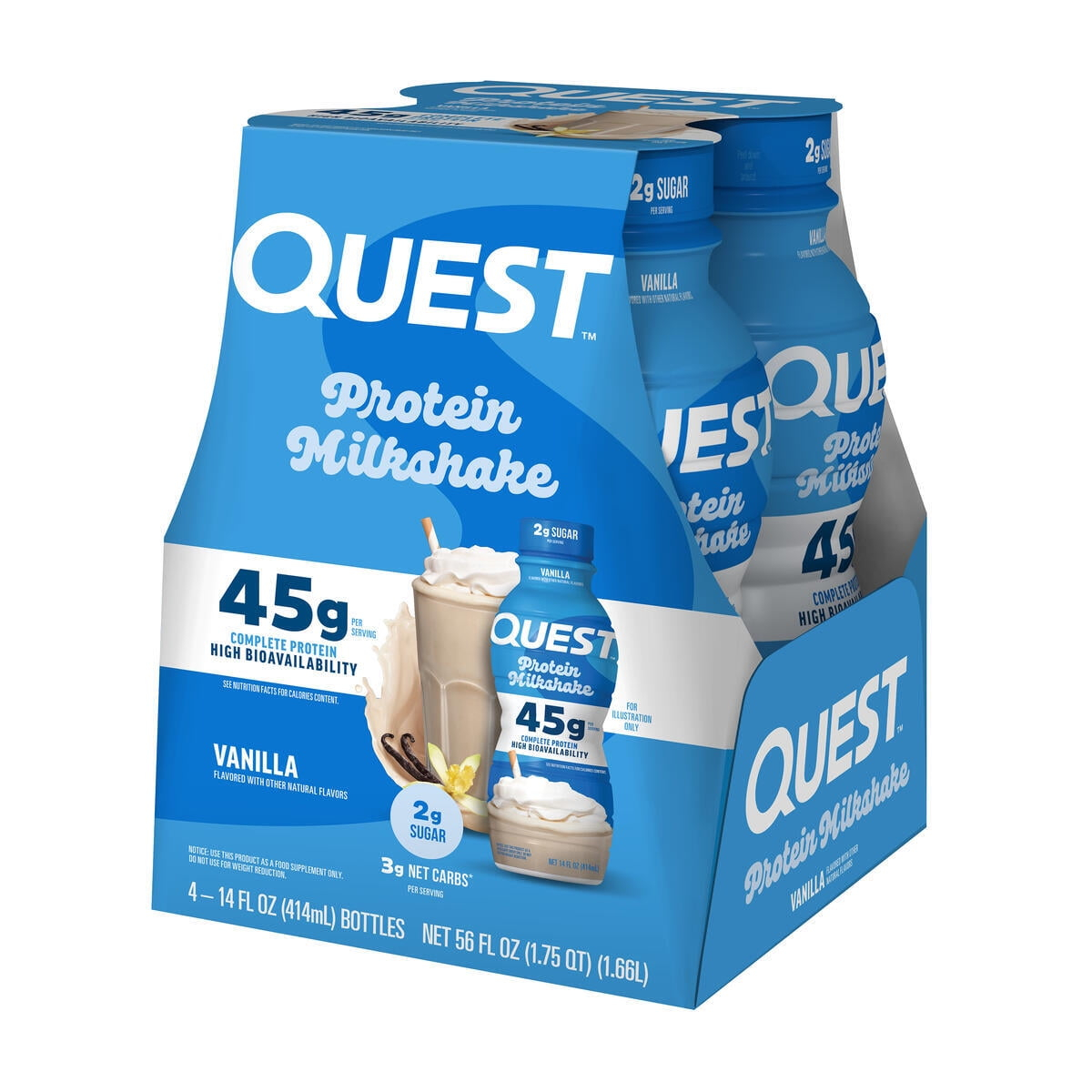 Quest Protein Milkshake, Vanilla Flavor, High Protein, Low Sugar, 14fl oz, 4 Count