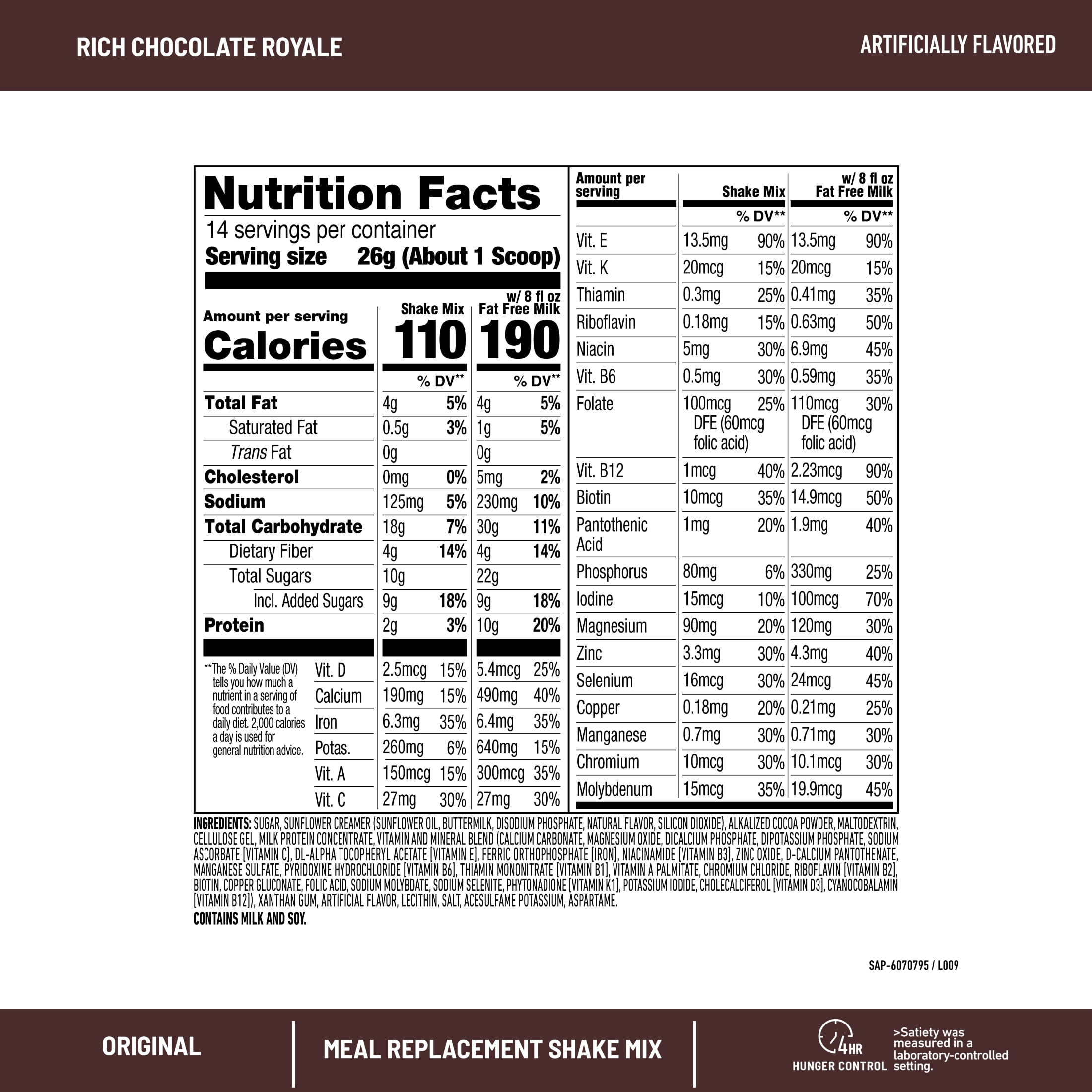 Losing weight is as easy as 1 – 2 – 3 when you activate the SlimFast Plan. One of the essential elements of this clinically proven weight loss program is replacing two daily meals with the great-tasting SlimFast Original Meal Replacement Shake Mix Powder. Softly sweet and blissfully creamy, the original Rich Chocolate flavor. The Rich Chocolate meal replacement product put SlimFast on the map with great-tasting product that curbs hunger cravings for up to four hours. It contains 200 calories in each 8-fluid ounce serving, giving you plenty of energy to keep your body alert during the day. It is also packed with vitamins, protein, essential minerals, and fiber. This meal replacement shake mix by SlimFast contains 10 grams of protein along with 4 grams of fiber and 24 essential vitamins and minerals that help your body process and burn stored fat, making it easier for you to lose weight. Whip one up with milk and ice or add a scoop to your favorite smoothie recipe.