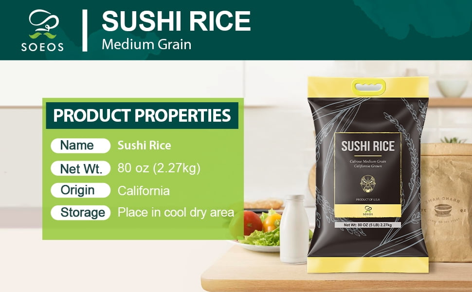 Soeos Premium Sushi Rice, Calrose Rice, Medium Grain, 80 oz (5 lb) 2.27Kg
