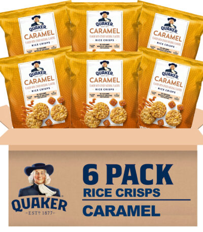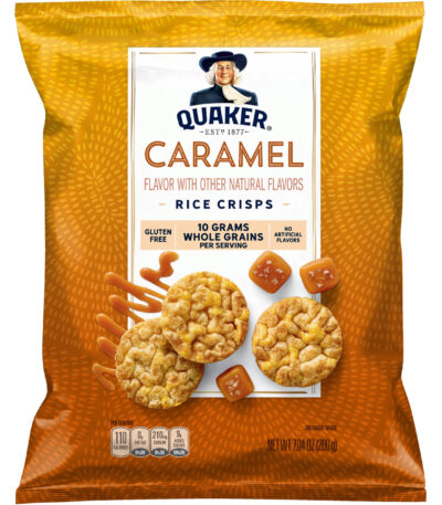 Whoever invented caramel corn deserves a statue in their honor. In lieu of a national holiday, celebrate with the sweet, buttery crunch of this scrumptiously delicious rice confection. Parade to the nearest store and grab a bag or two. Quaker Rice Crisps in Caramel flavor offer a delightful treat that’s both crispy and sweet. Each 7.04-ounce bag is filled with light, airy rice crisps coated in a rich caramel glaze. Perfect for a satisfying snack or a sweet treat during your day, these crisps deliver a satisfying crunch and a burst of caramel flavor that’s both delicious and satisfying.