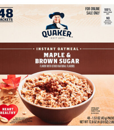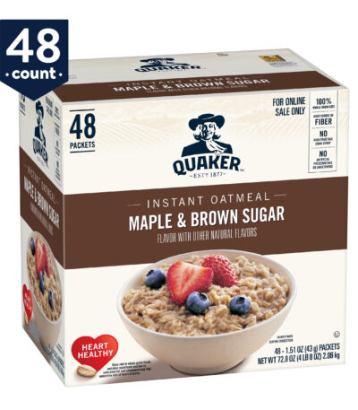 Quaker Instant Oatmeal, Maple & Brown Sugar, Quick Cook Oatmeal, 48 Packets